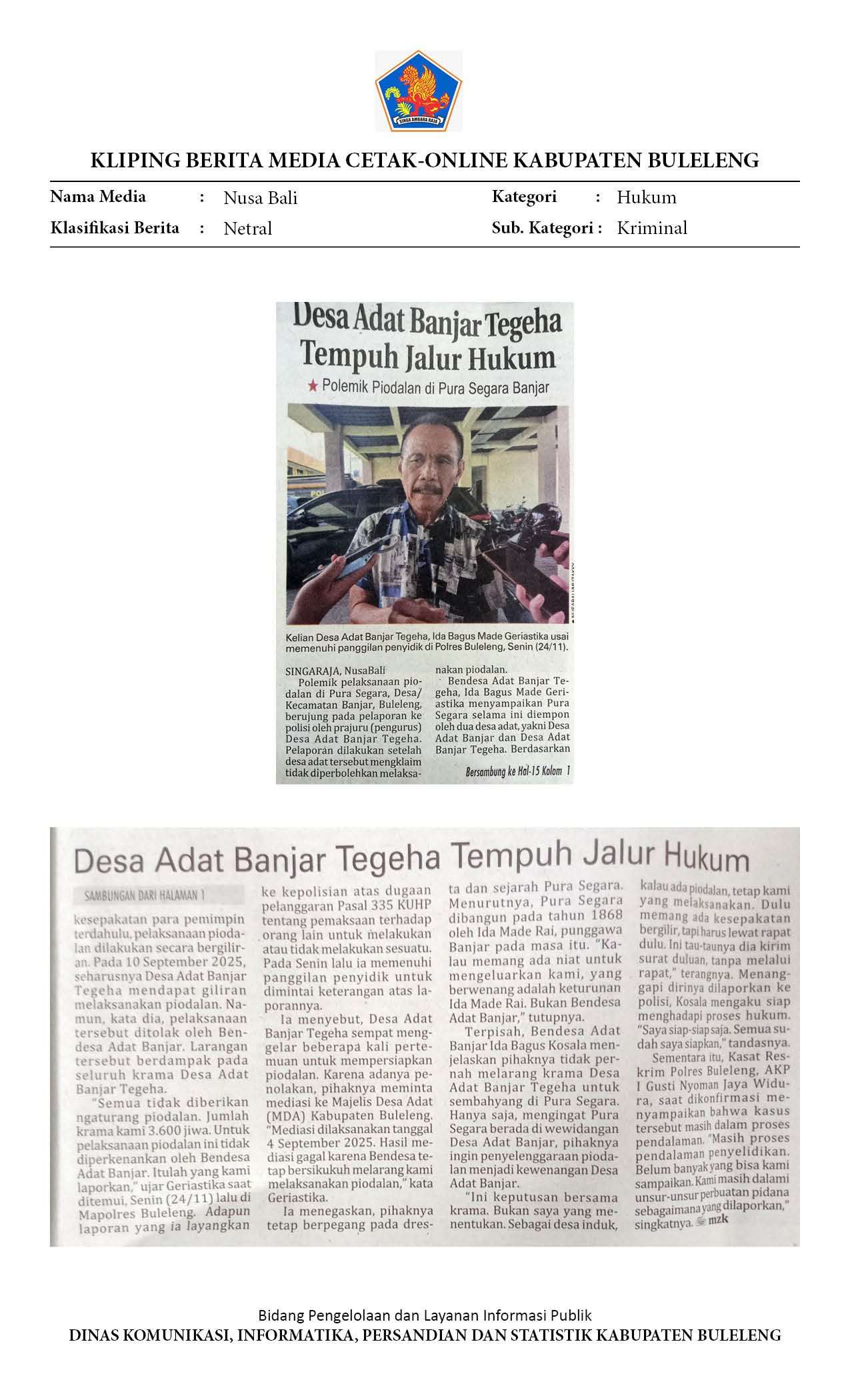 DESA ADAT BANJAR TEGEHA TEMPUH JALUR HUKUM