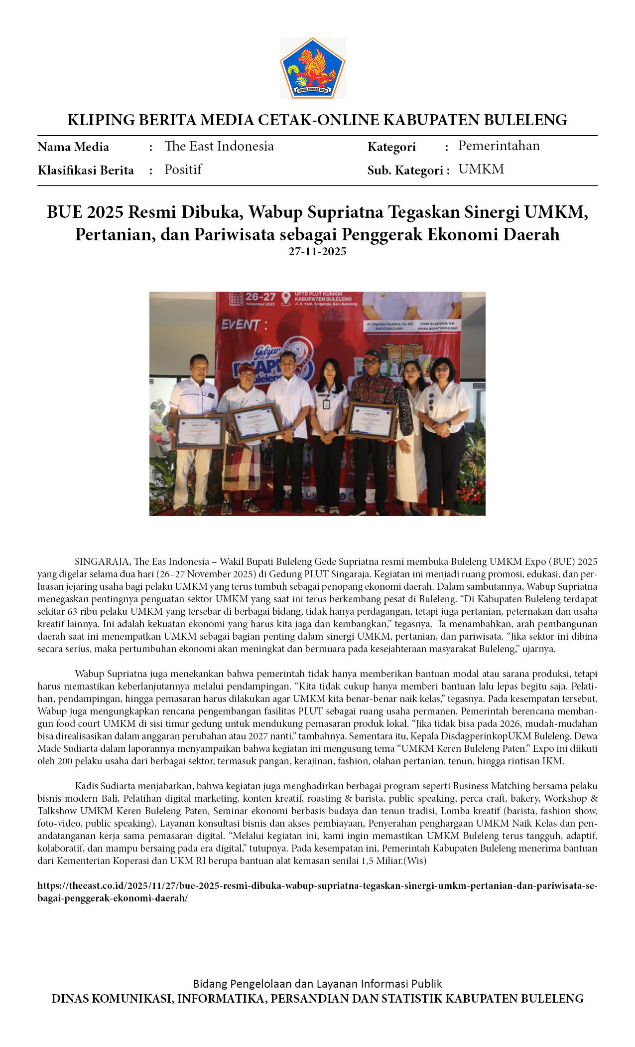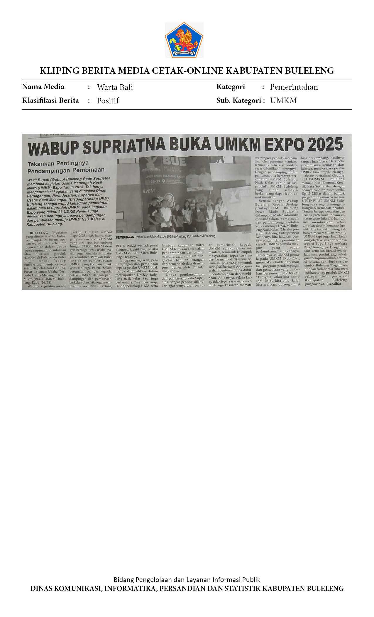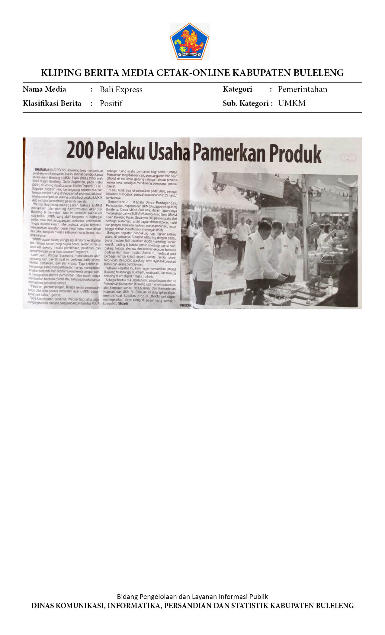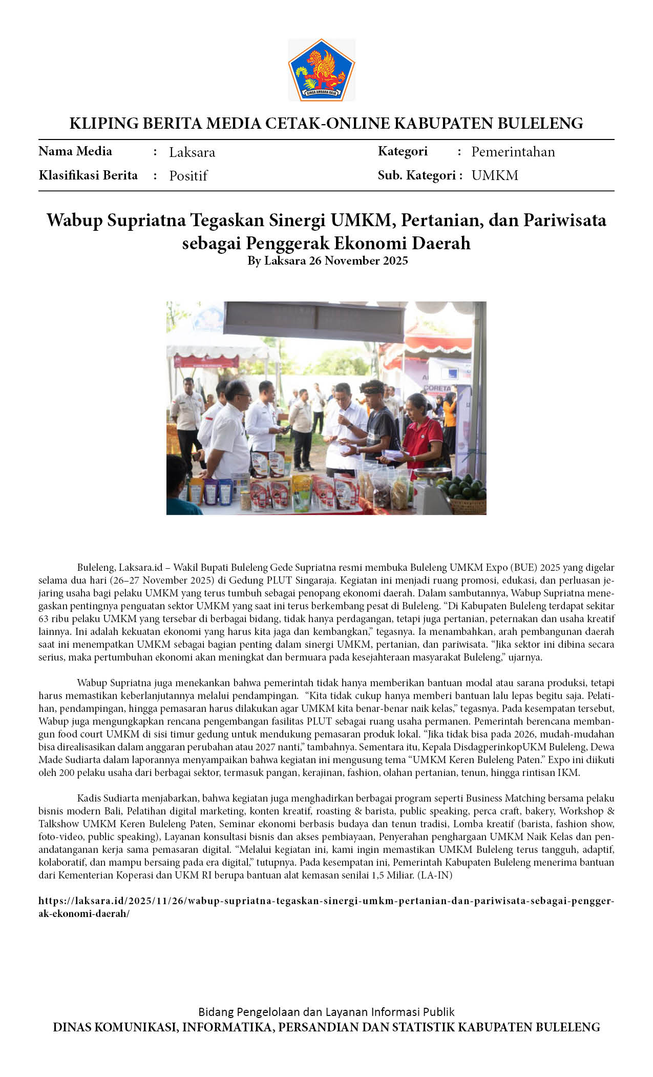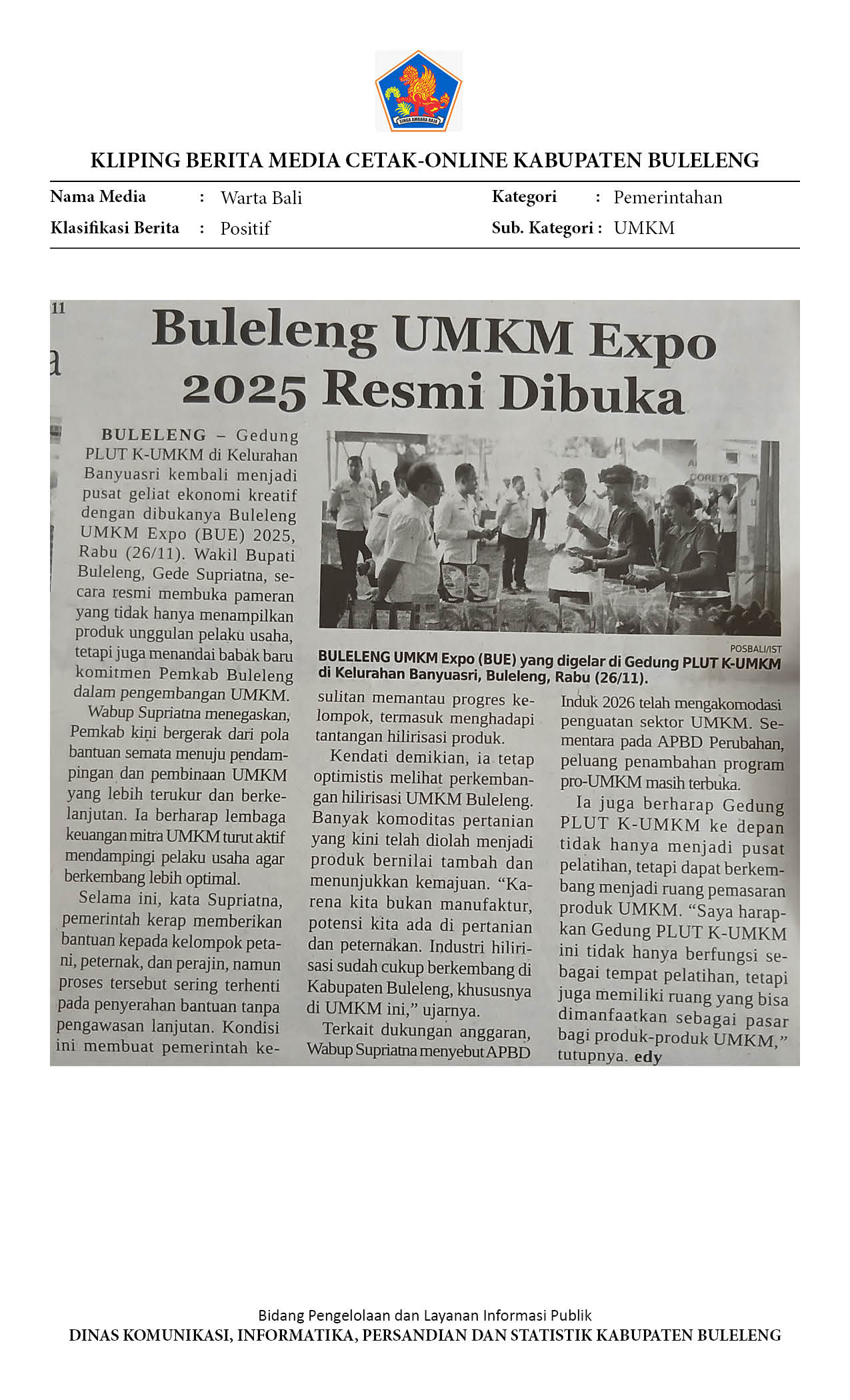 BULELENG UMKM EXPO 2025 RESMI DIBUKA, WABUP SUPRIATNA DORONG PENDAMPINGAN BERKELANJUTAN
