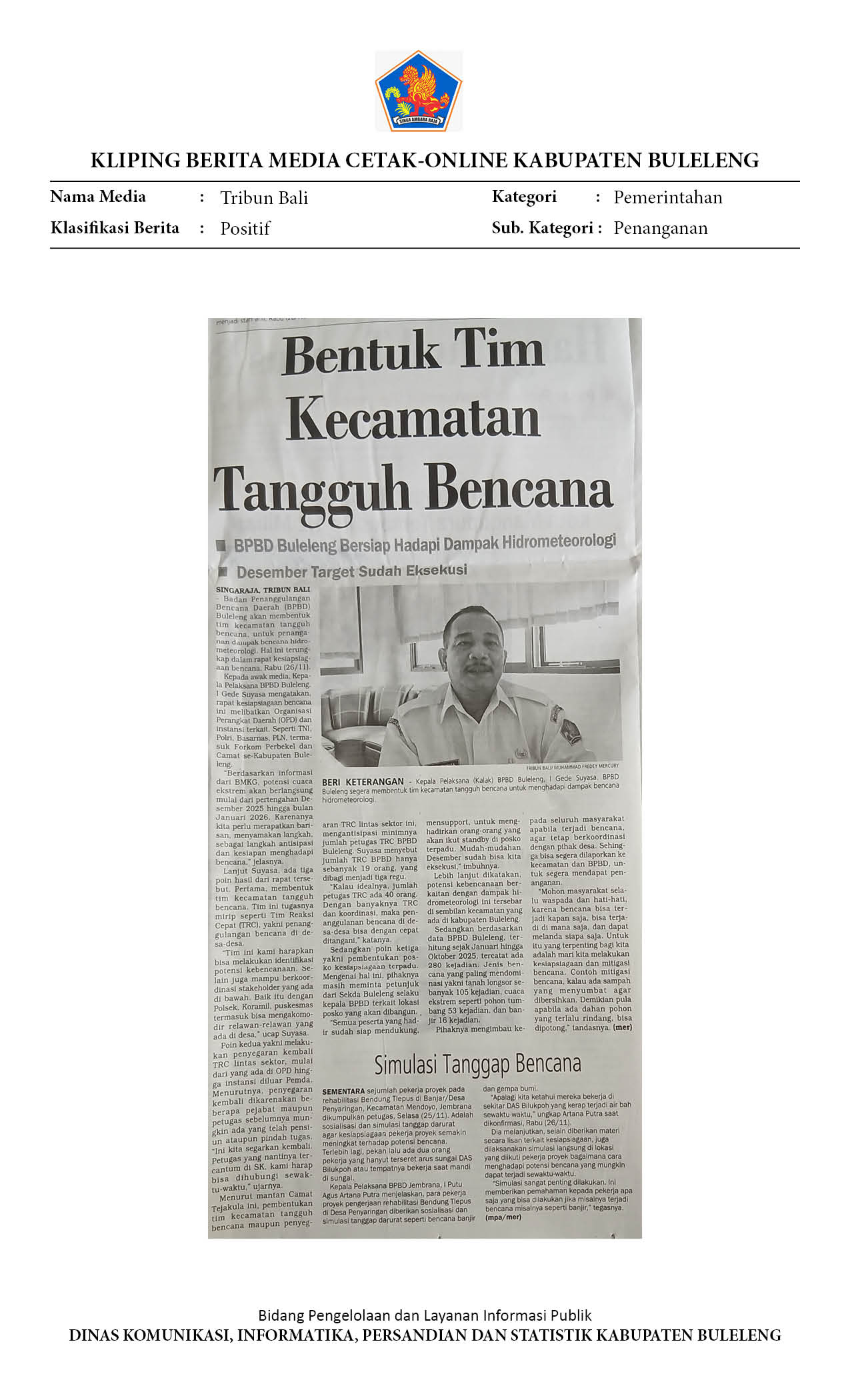 BULELENG SIAGA CUACA EKSTREM, BPBD BENTUK TIM KECAMATAN TANGGUH BENCANA