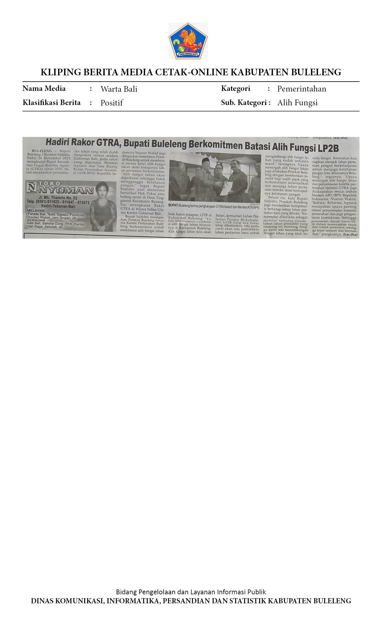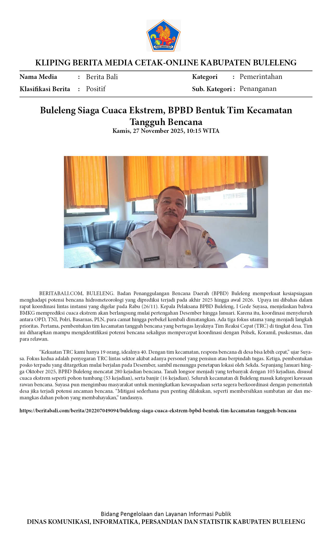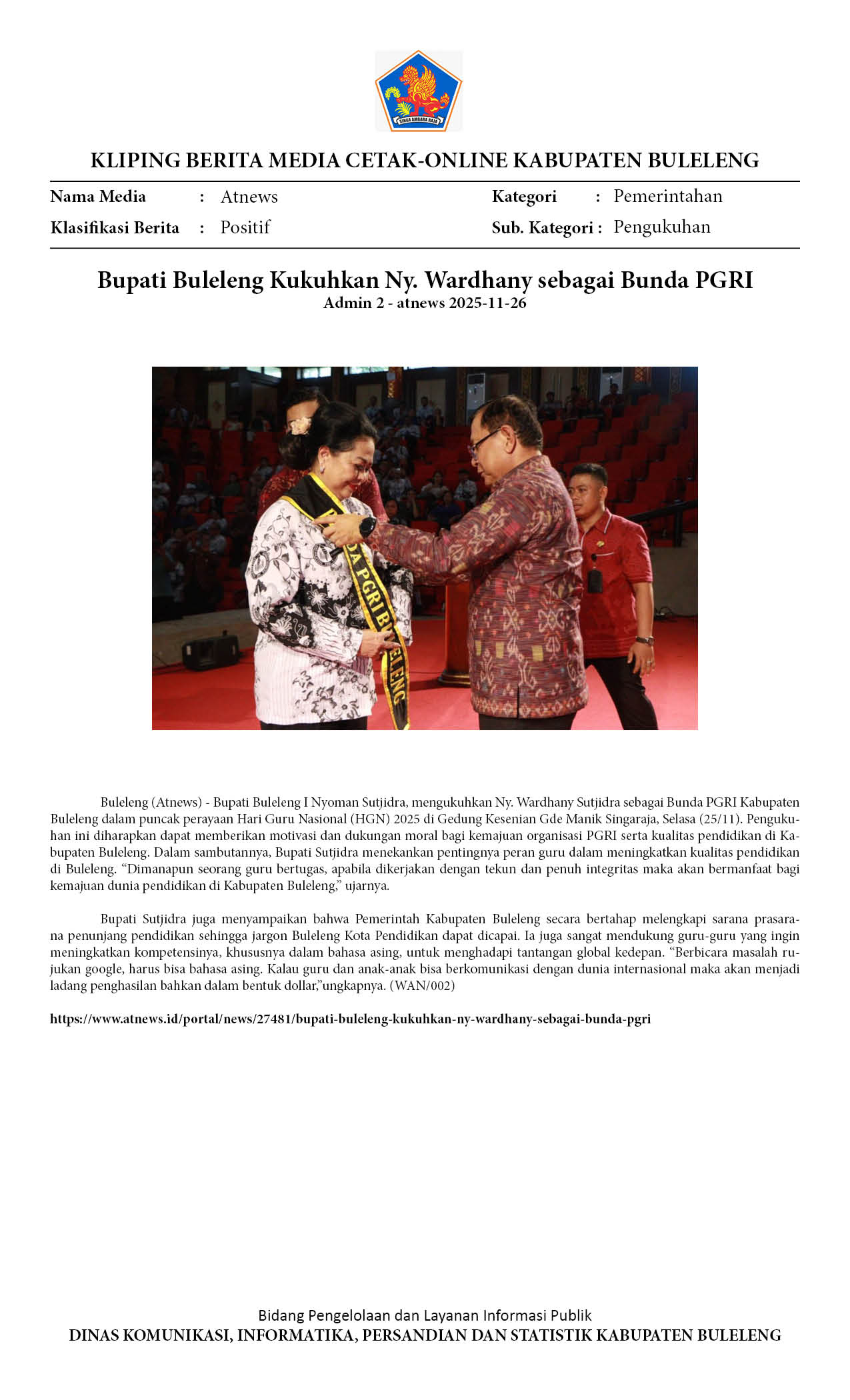 Kliping Kategori Pemerintahan Edisi 27 November 2025