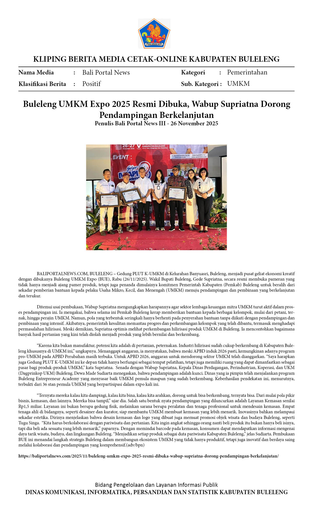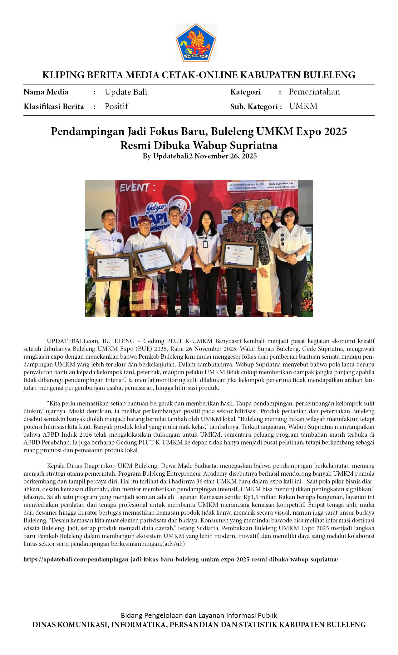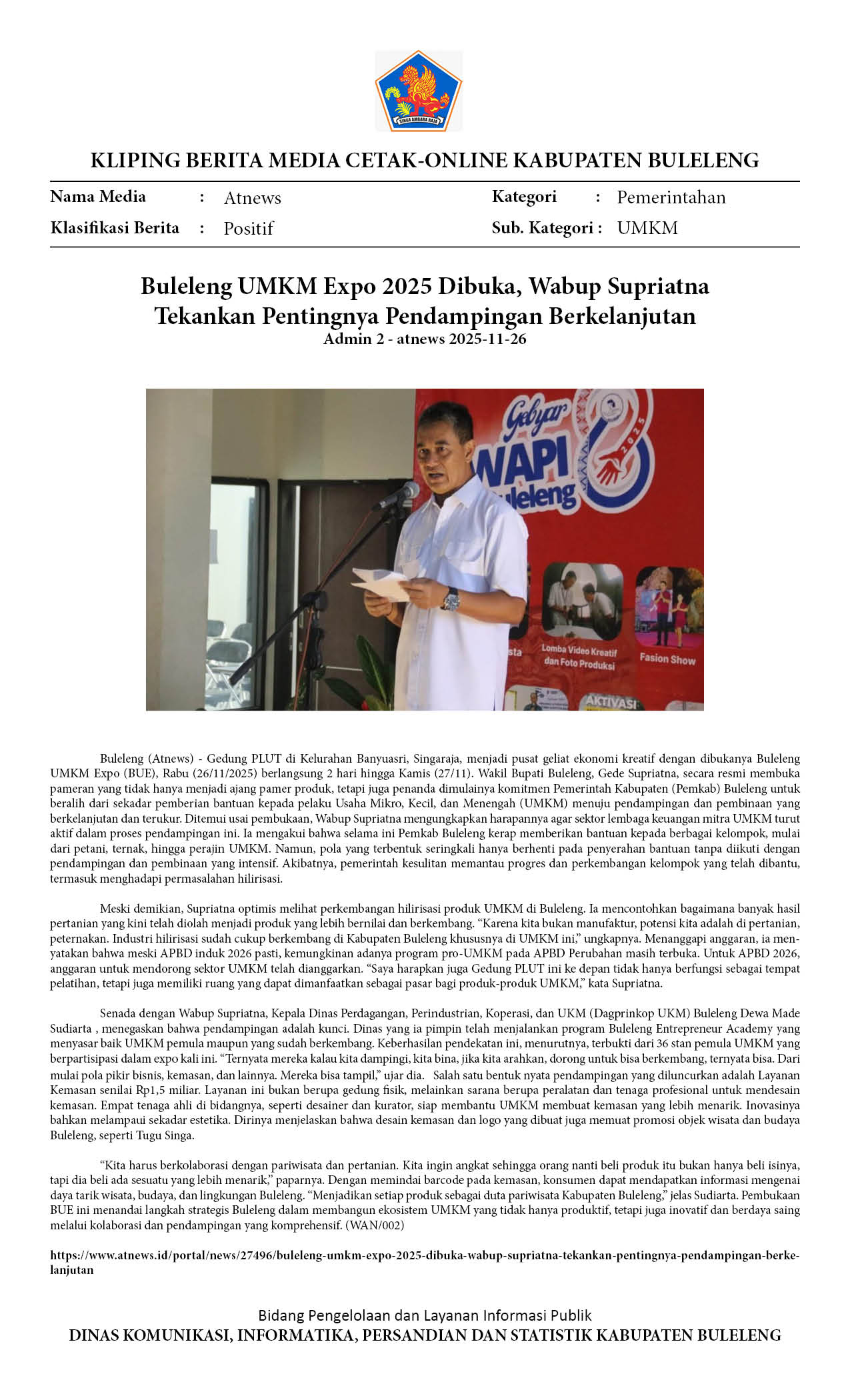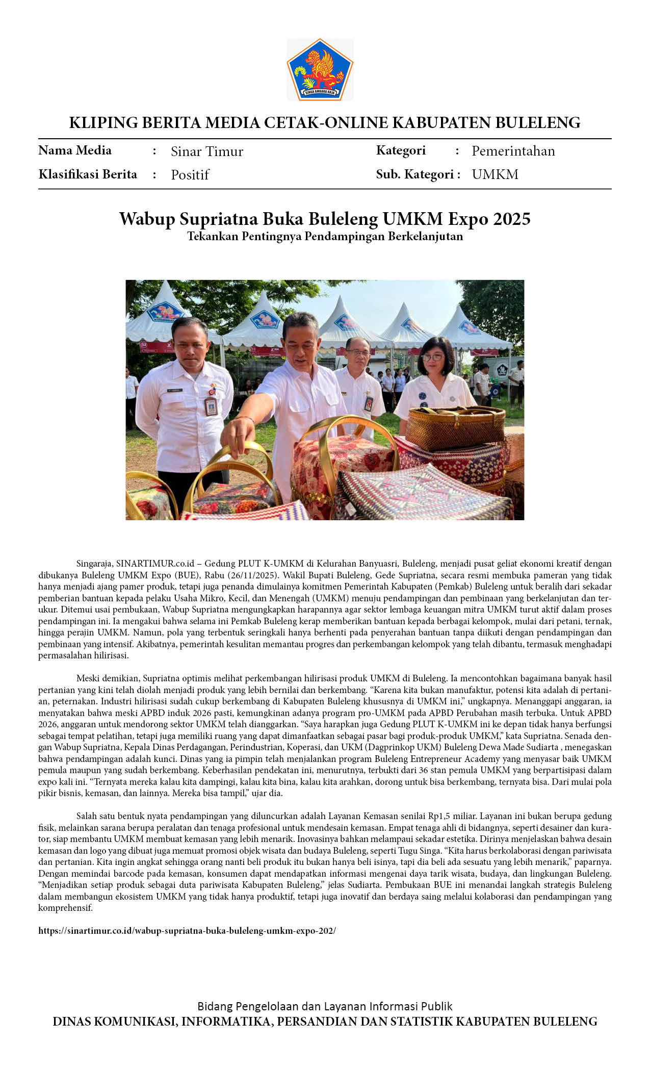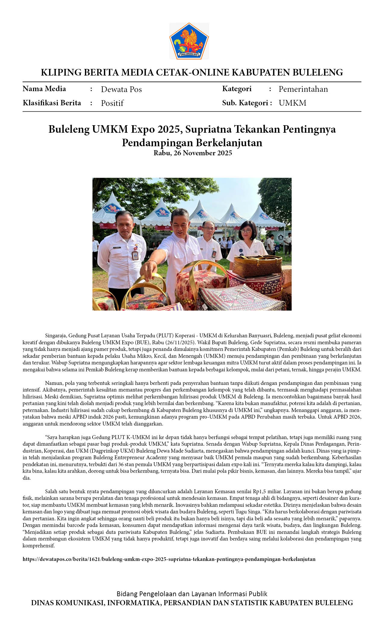BULELENG UMKM EXPO 2025, SUPRIATNA TEKANKAN PENTINGNYA PENDAMPINGAN BERKELANJUTAN