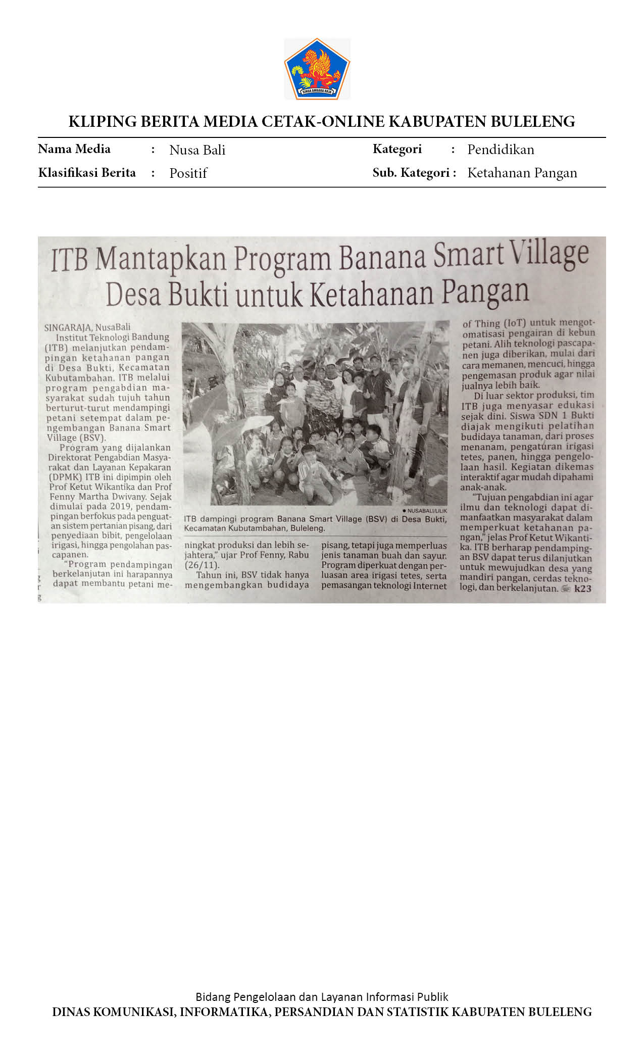 ITB MANTAPKAN PROGRAM BANANA SMART VILLAGE DESA BUKTI UNTUK KETAHANAN PANGAN