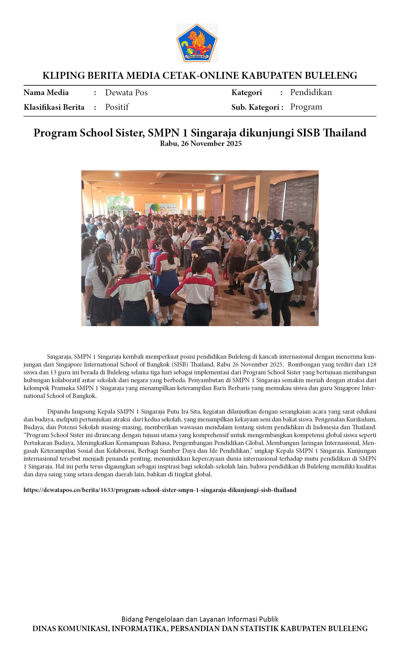 PROGRAM SCHOOL SISTER, SMPN 1 SINGARAJA DIKUNJUNGI SISB THAILAND