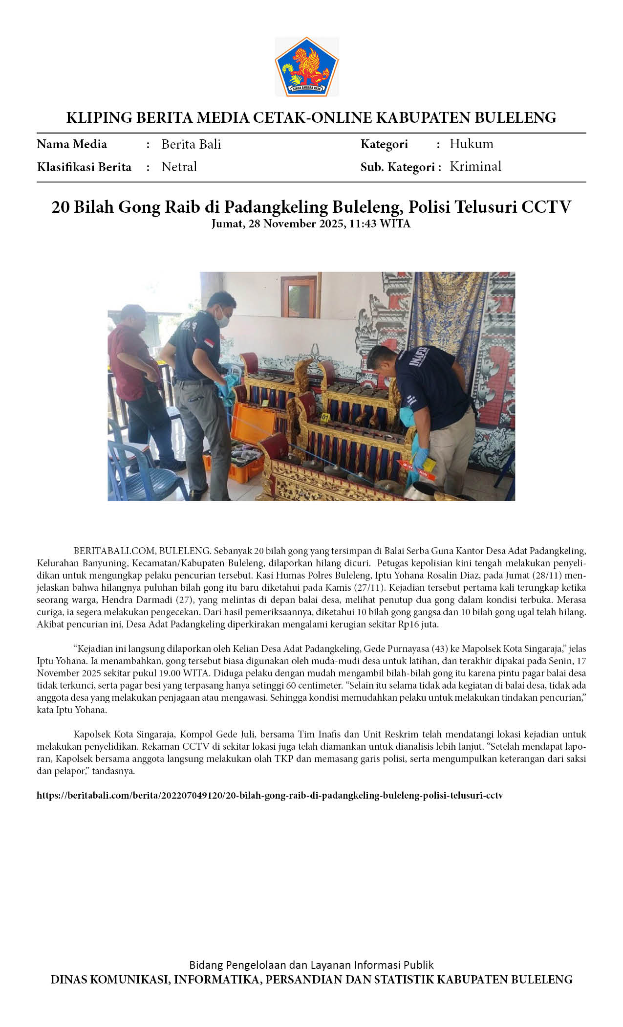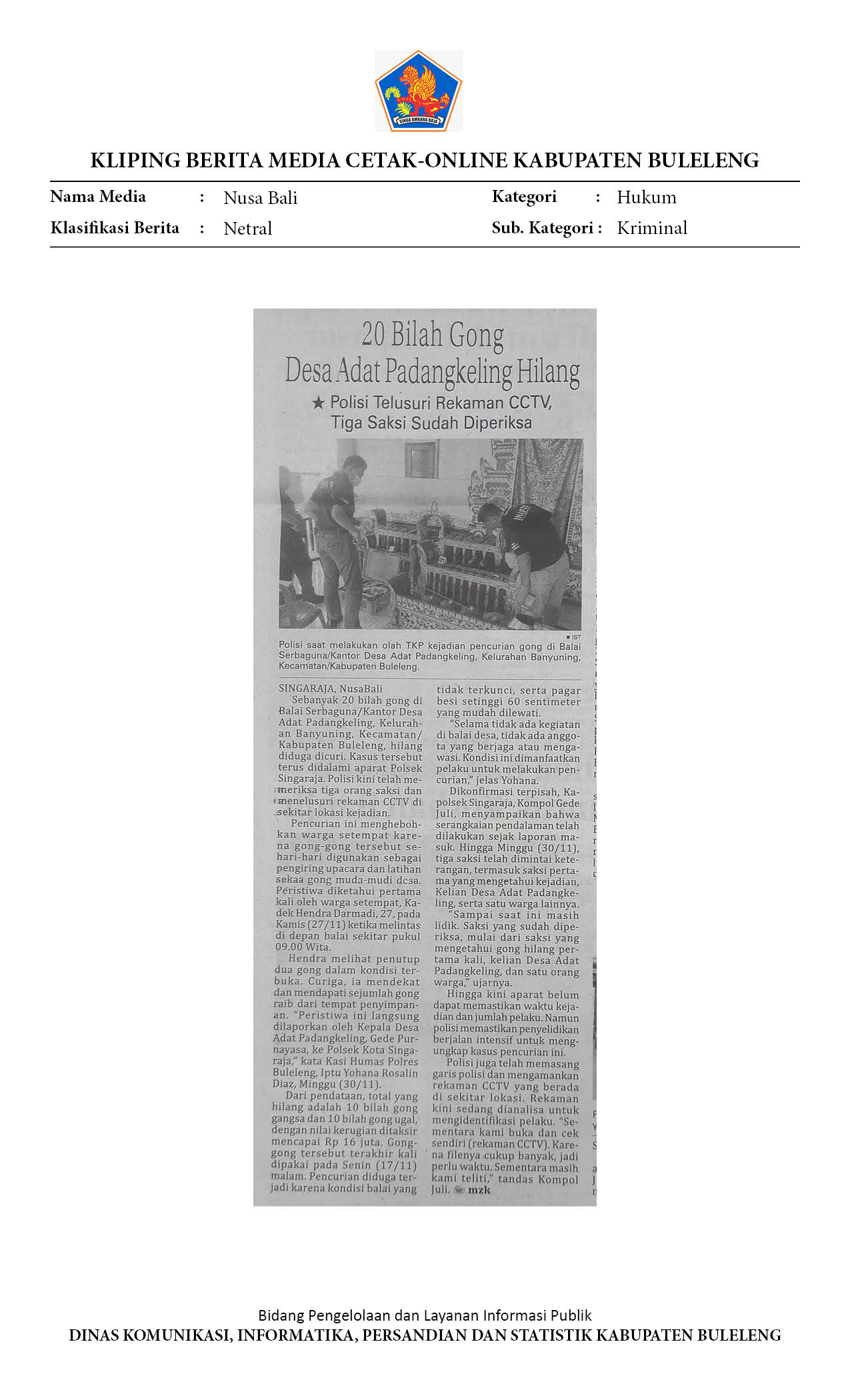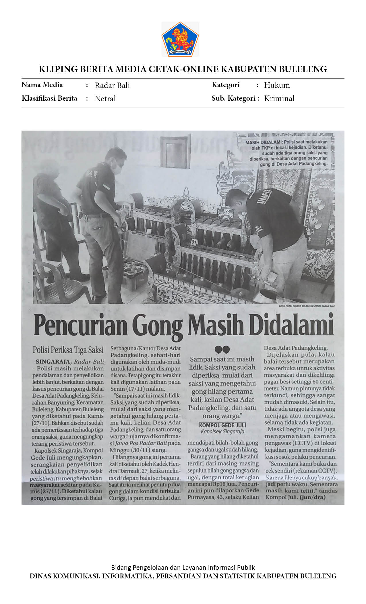 20 BILAH GONG RAIB DI PADANGKELING BULELENG, POLISI TELUSURI CCTV