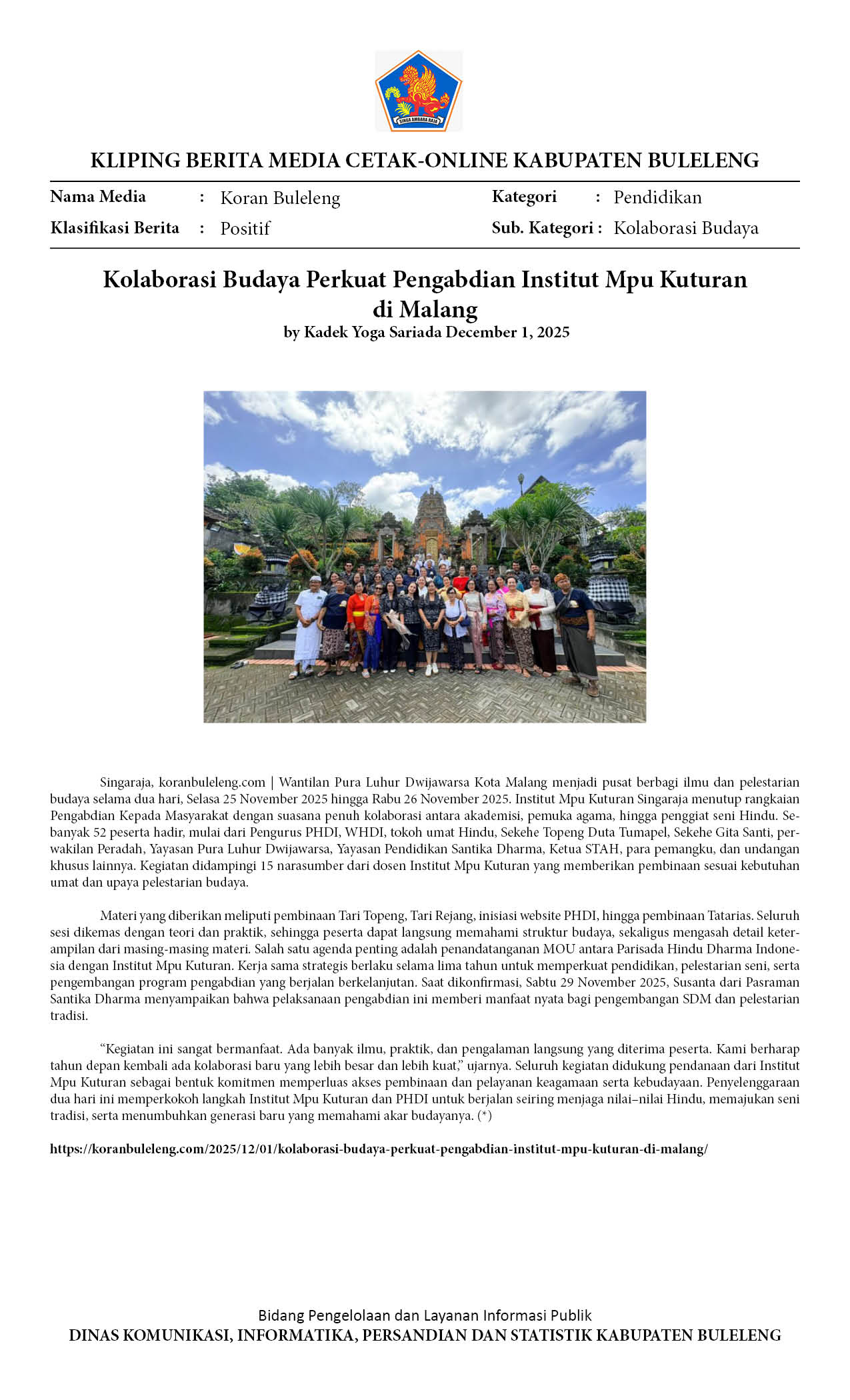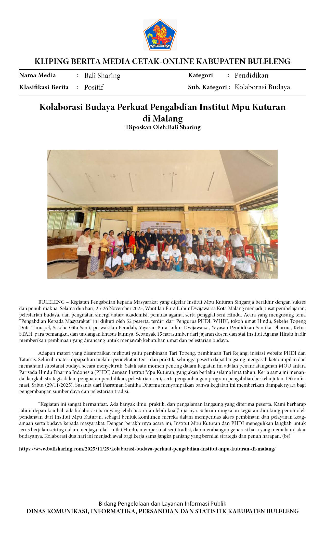KOLABORASI BUDAYA PERKUAT PENGABDIAN INSTITUT MPU KUTURAN DI MALANG