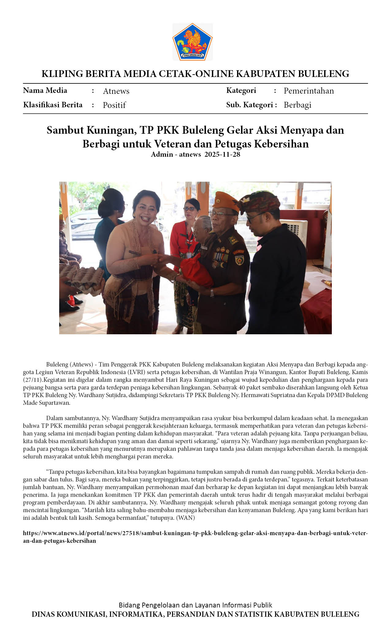 SAMBUT KUNINGAN, TP PKK BULELENG GELAR AKSI MENYAPA DAN BERBAGI UNTUK VETERAN DAN PETUGAS KEBERSIHAN
