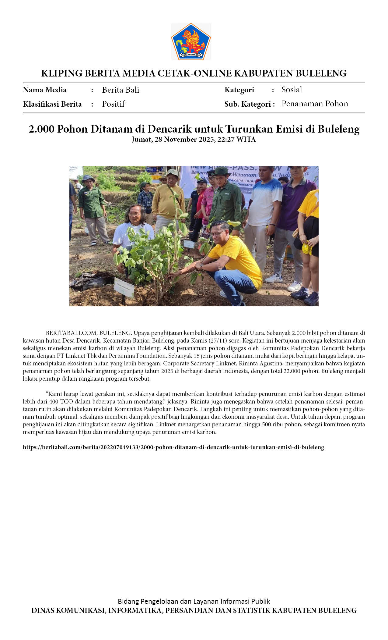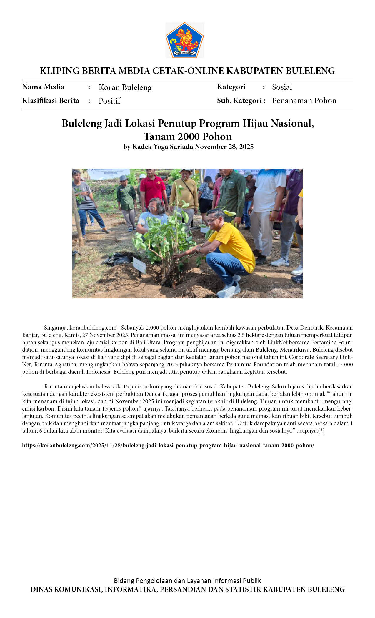 BULELENG JADI LOKASI PENUTUP PROGRAM HIJAU NASIONAL, TANAM 2000 POHON