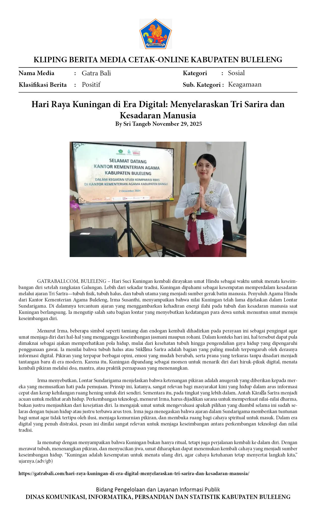 HARI RAYA KUNINGAN DI ERA DIGITAL: MENYELARASKAN TRI SARIRA DAN KESADARAN MANUSIA
