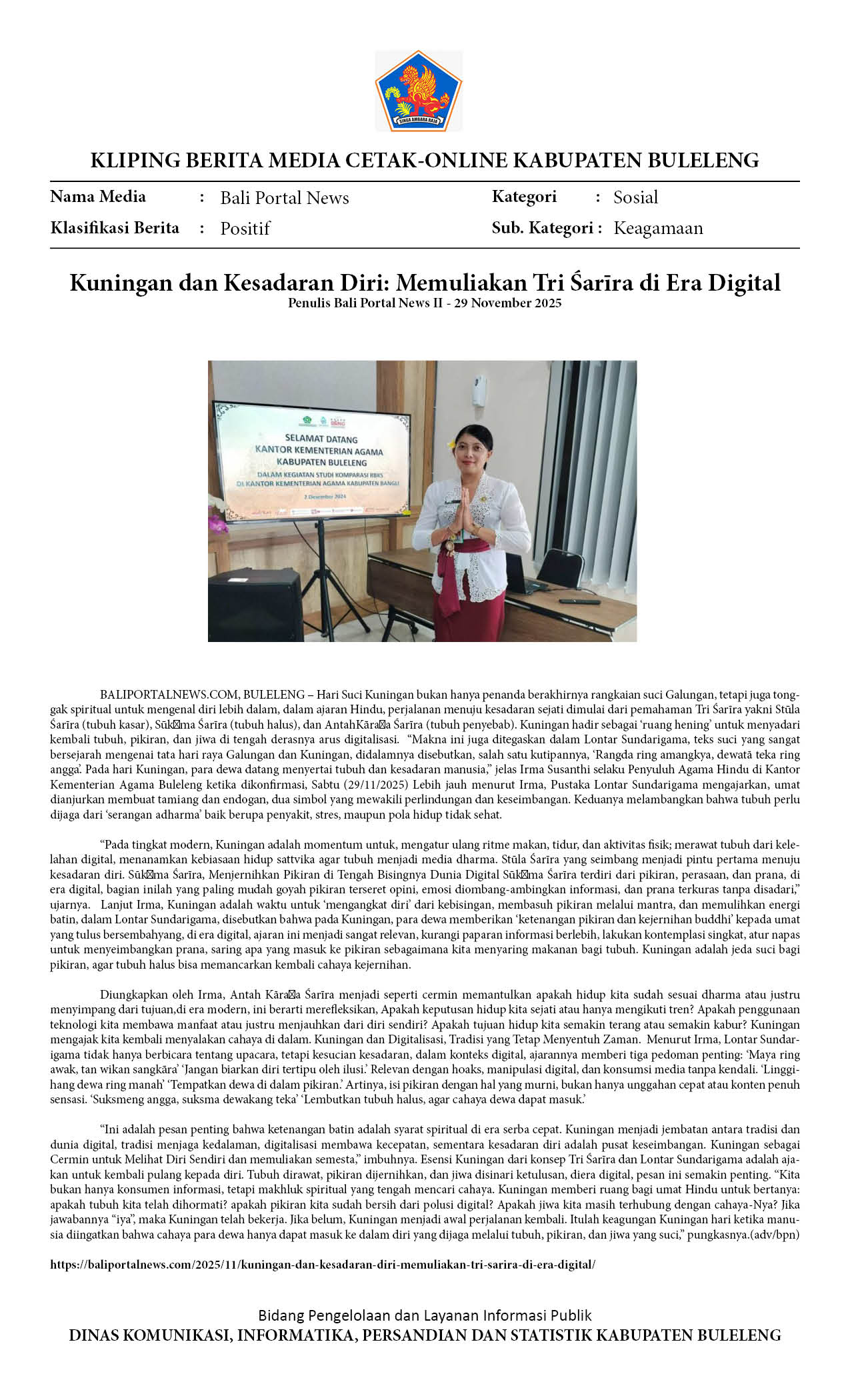 KUNINGAN DAN KESADARAN DIRI: MEMULIAKAN TRI ŚARīRA DI ERA DIGITAL