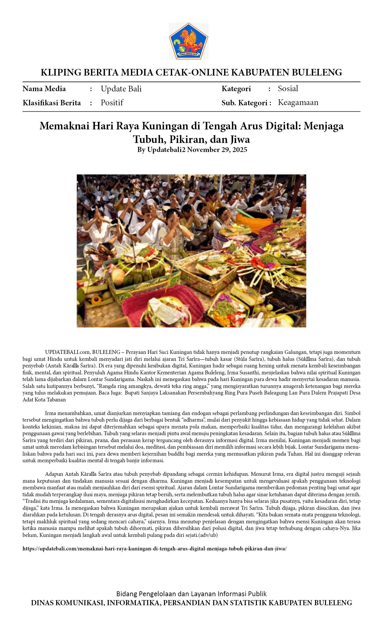 MEMAKNAI HARI RAYA KUNINGAN DI TENGAH ARUS DIGITAL: MENJAGA TUBUH, PIKIRAN, DAN JIWA