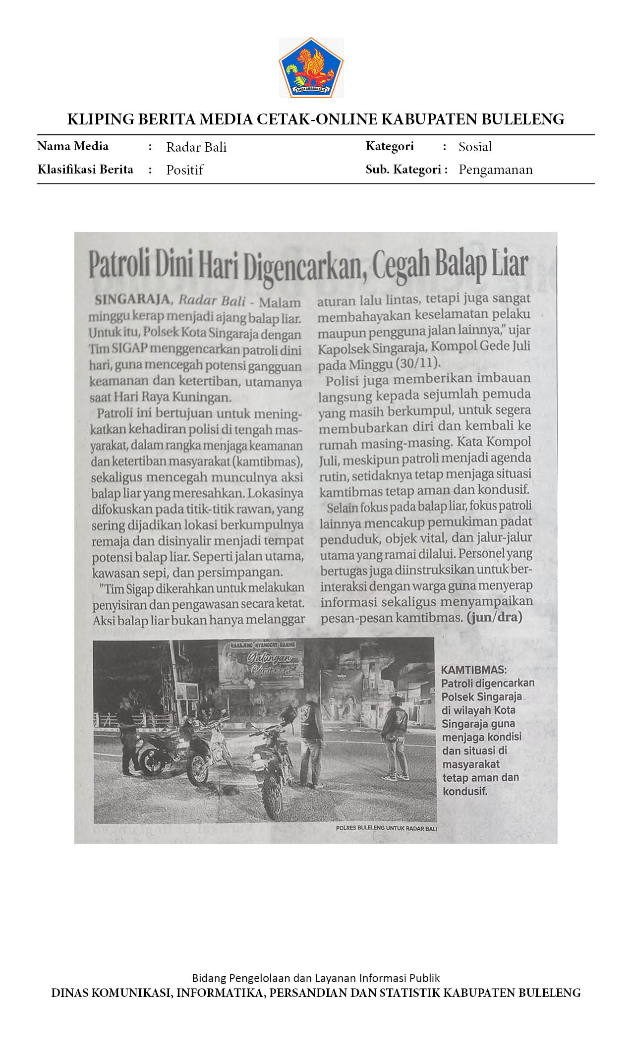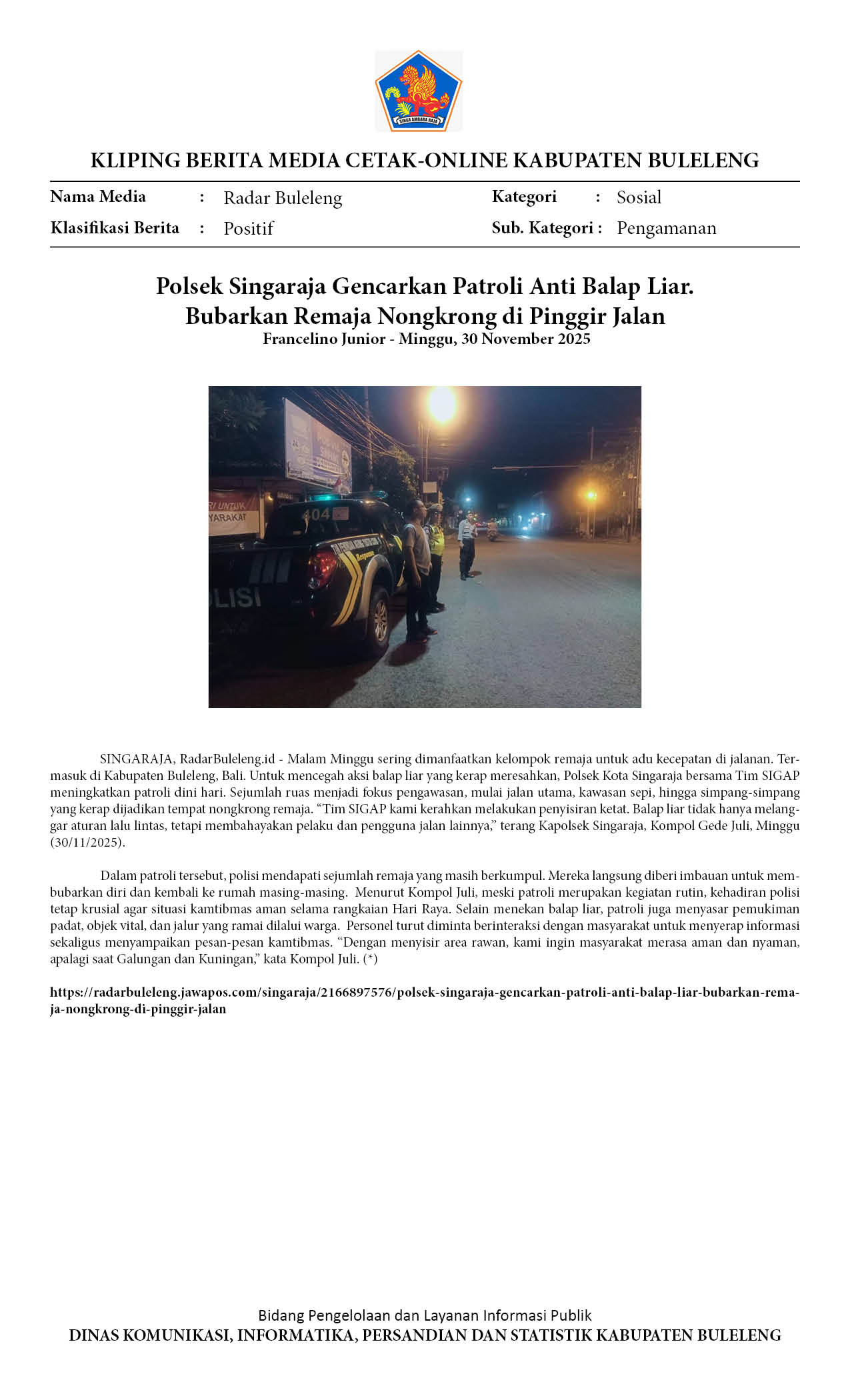POLSEK SINGARAJA GENCARKAN PATROLI ANTI BALAP LIAR. BUBARKAN REMAJA NONGKRONG DI PINGGIR JALAN