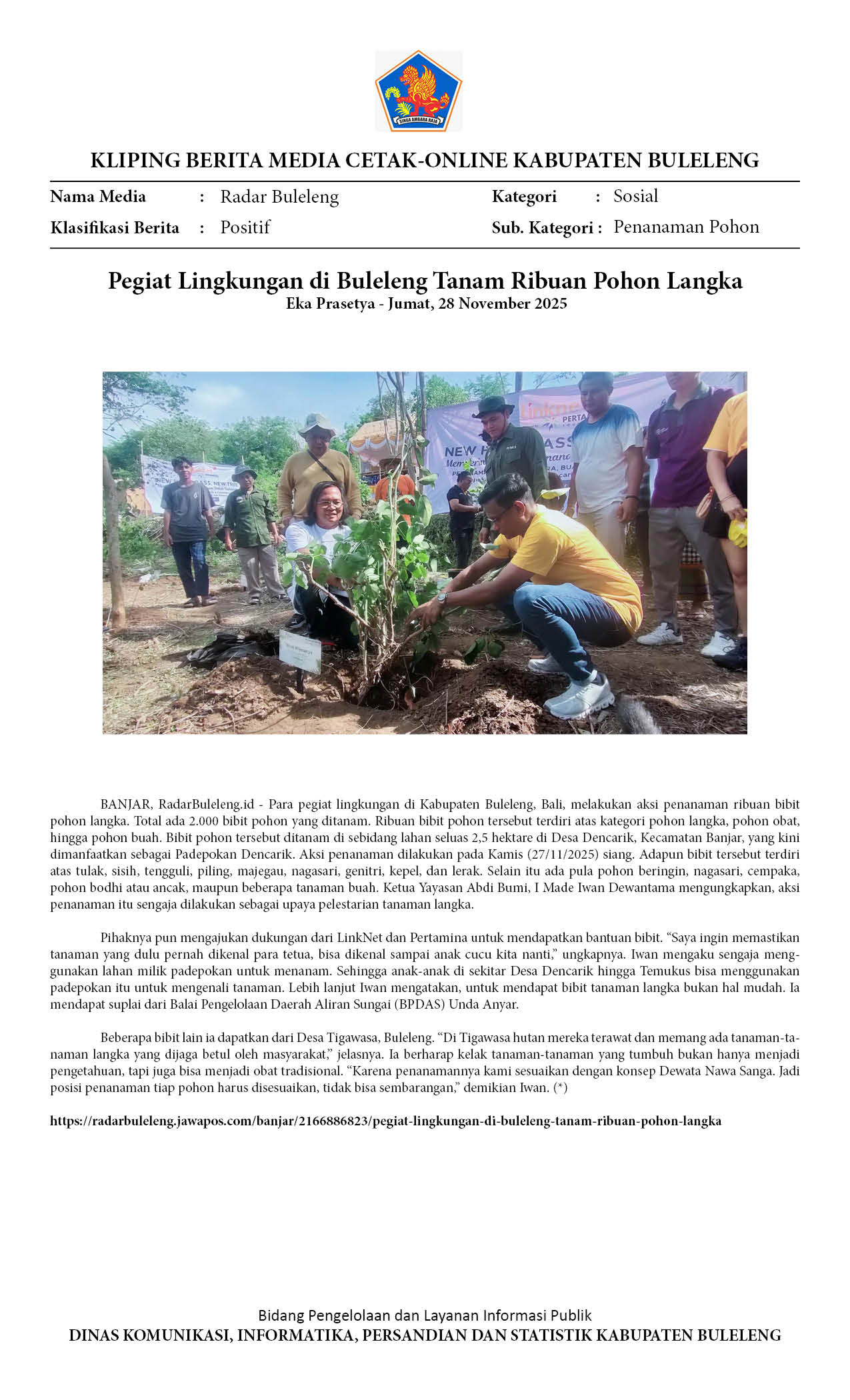 PEGIAT LINGKUNGAN DI BULELENG TANAM RIBUAN POHON LANGKA