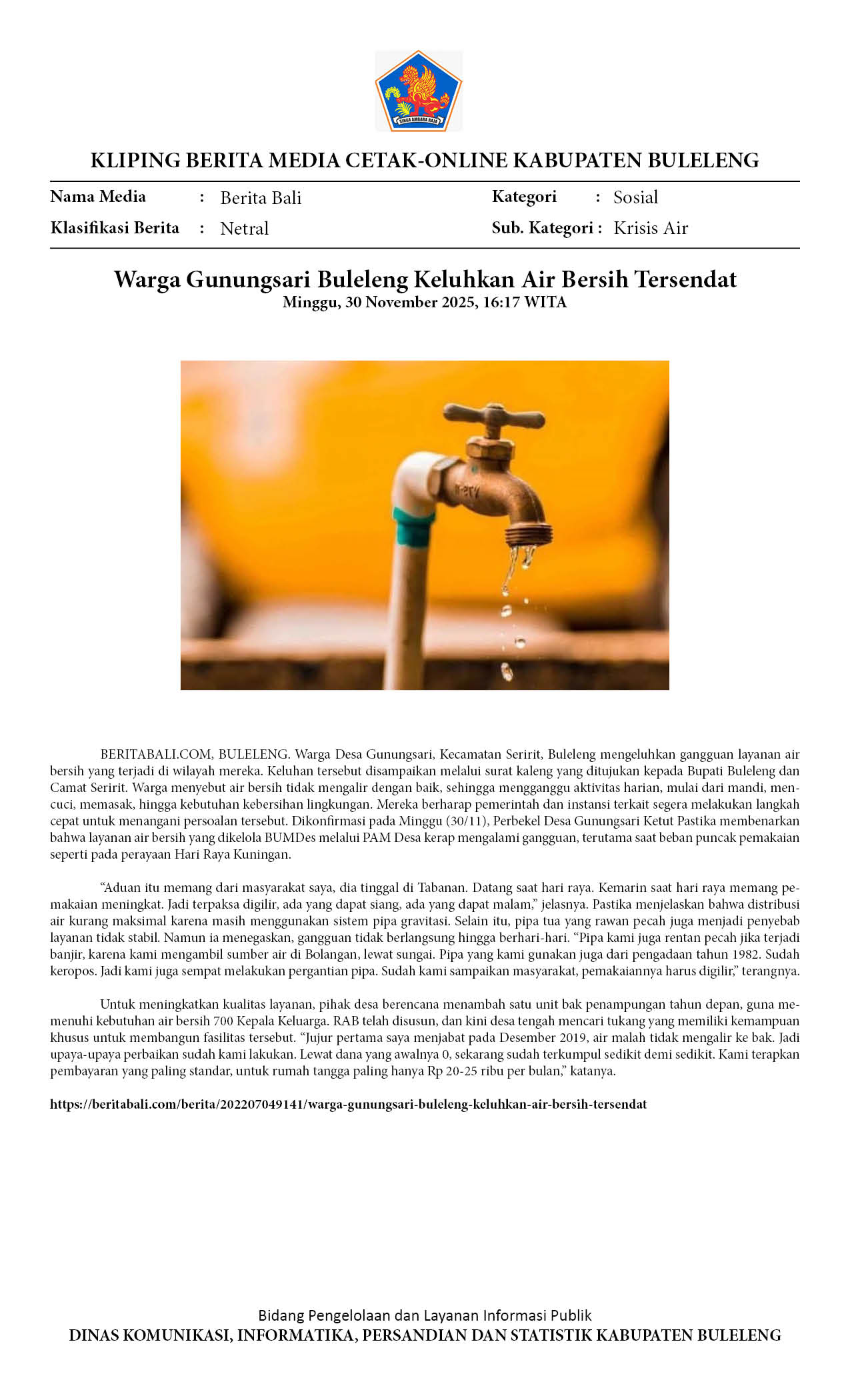WARGA GUNUNGSARI BULELENG KELUHKAN AIR BERSIH TERSENDAT