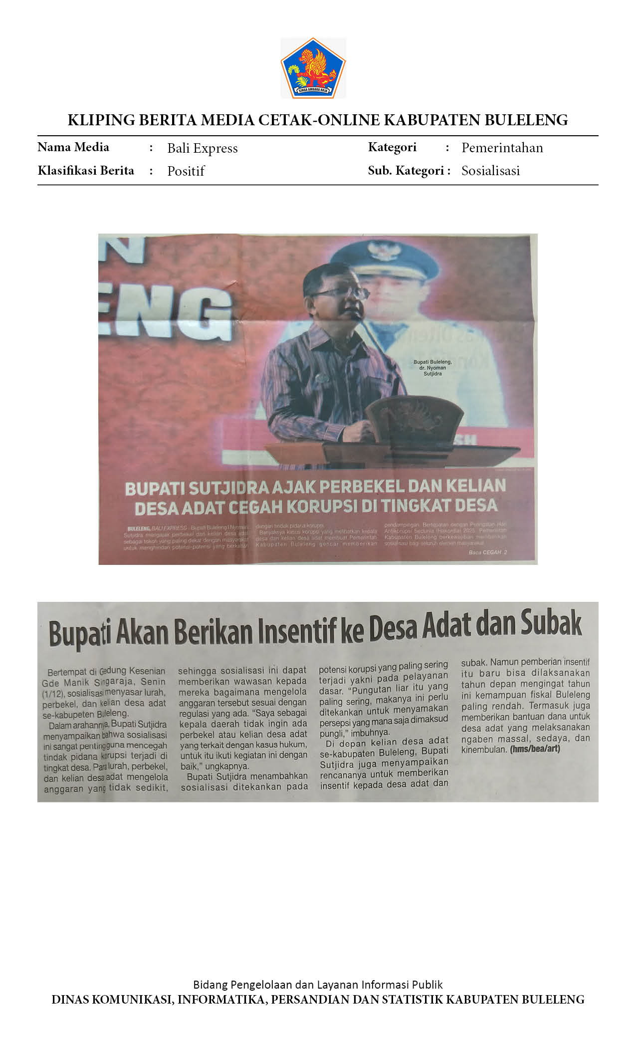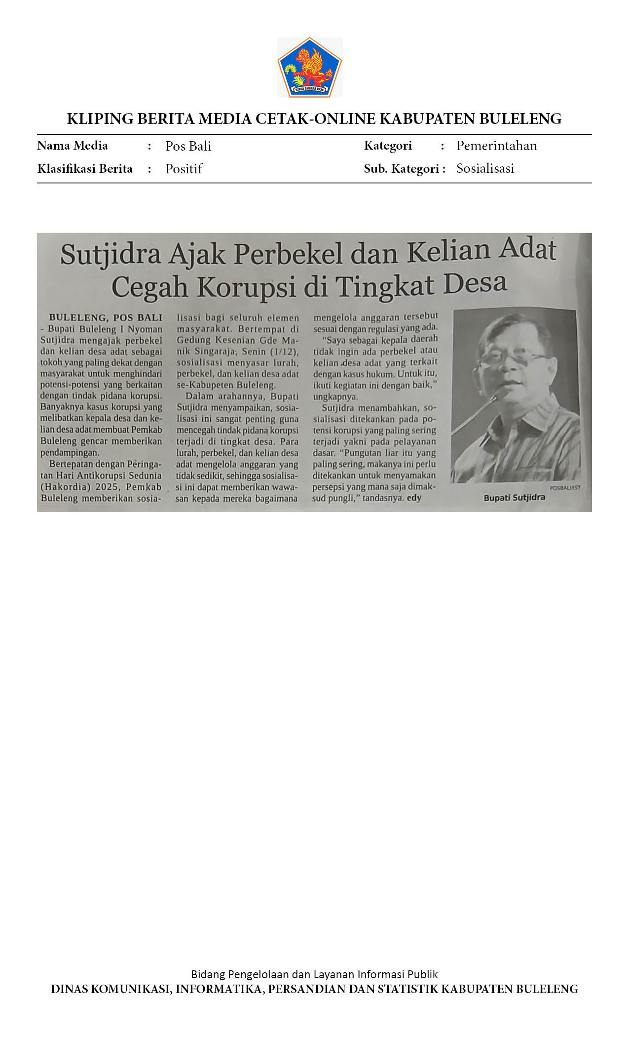 BUPATI SUTJIDRA TAK INGIN PERBEKEL DI BULELENG TERJERAT KASUS KORUPSI