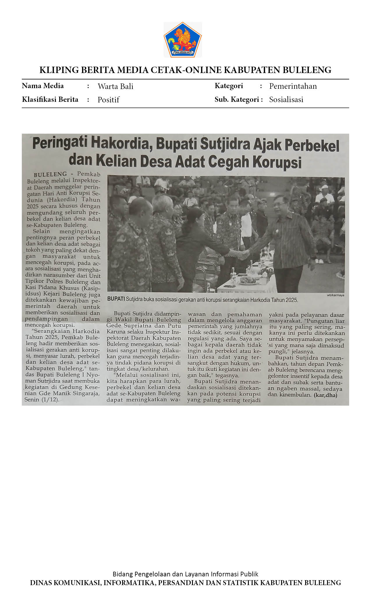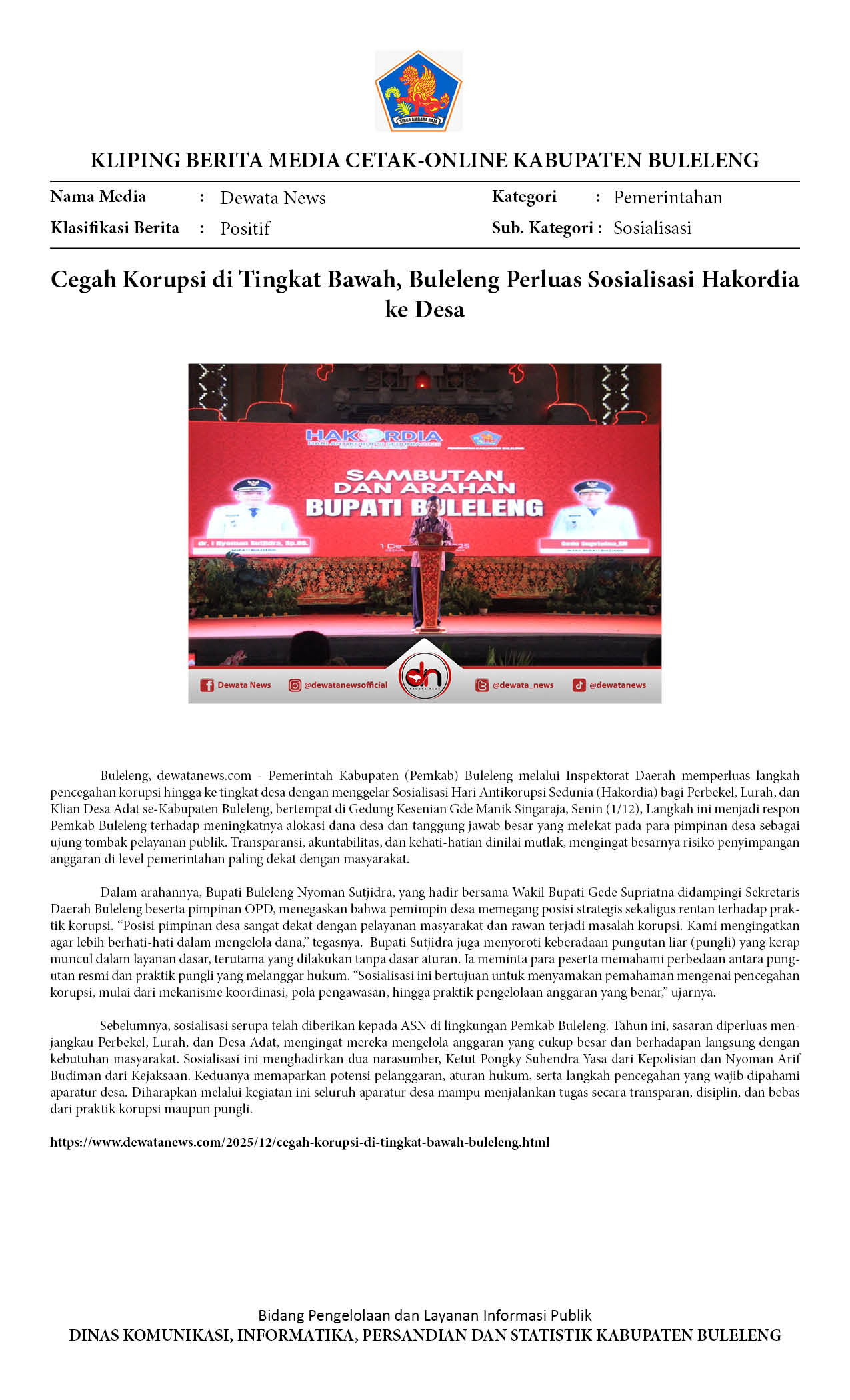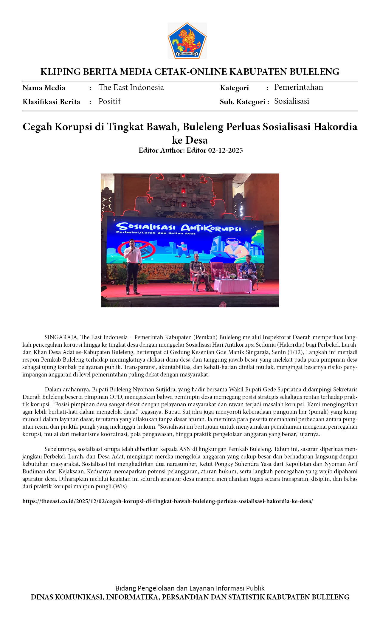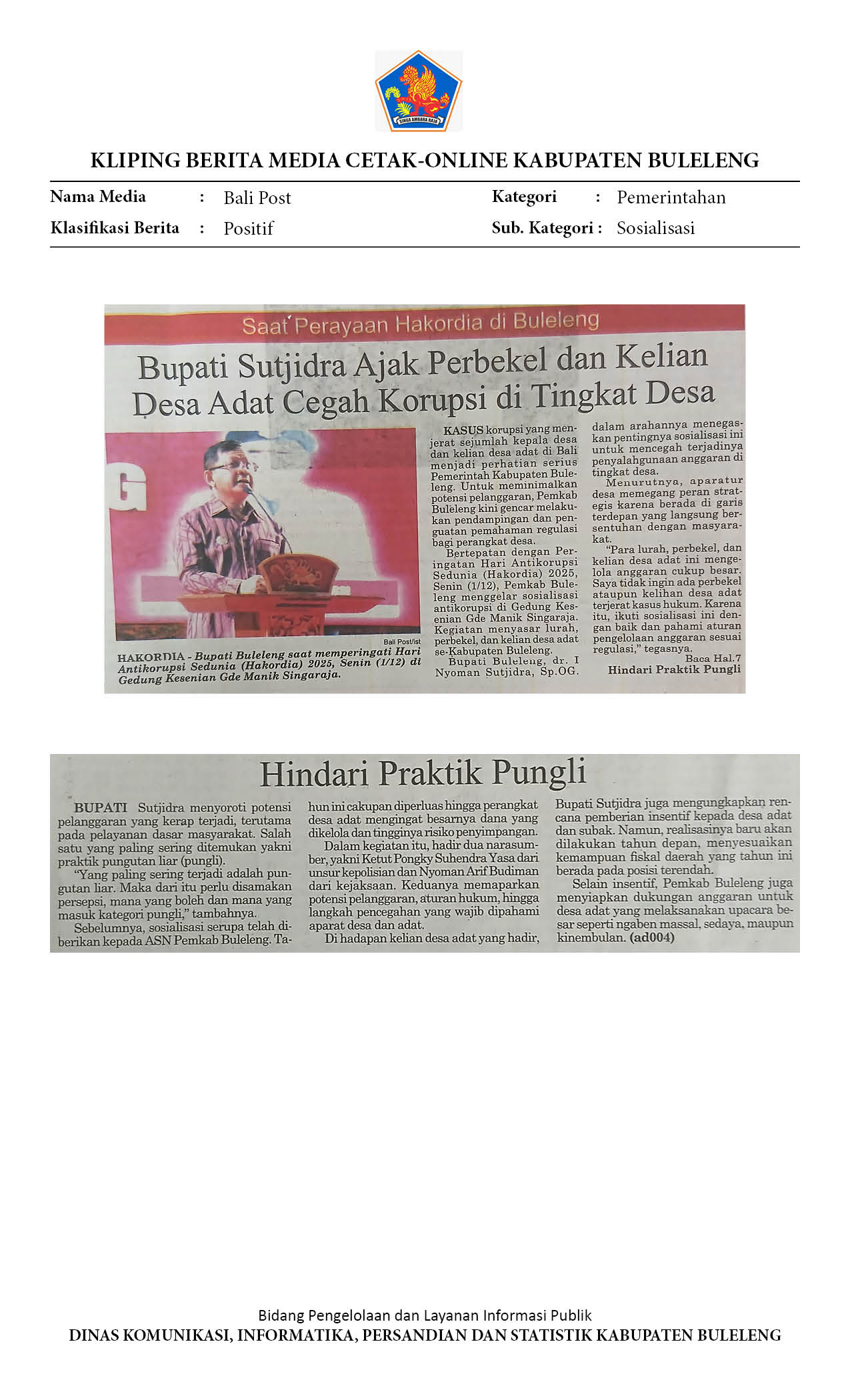 CEGAH KORUPSI DI TINGKAT BAWAH, BULELENG PERLUAS SOSIALISASI HAKORDIA KE DESA