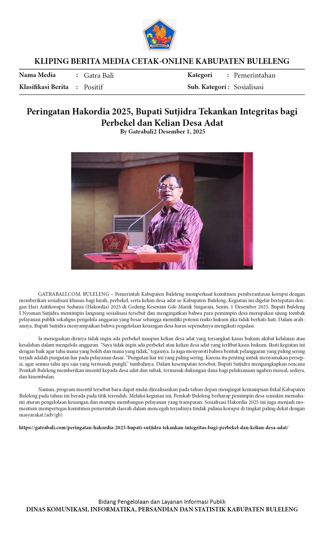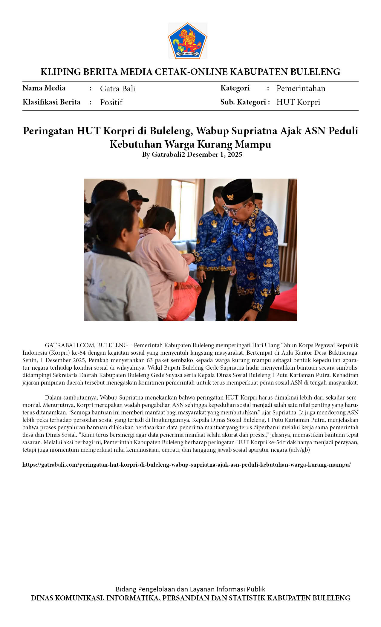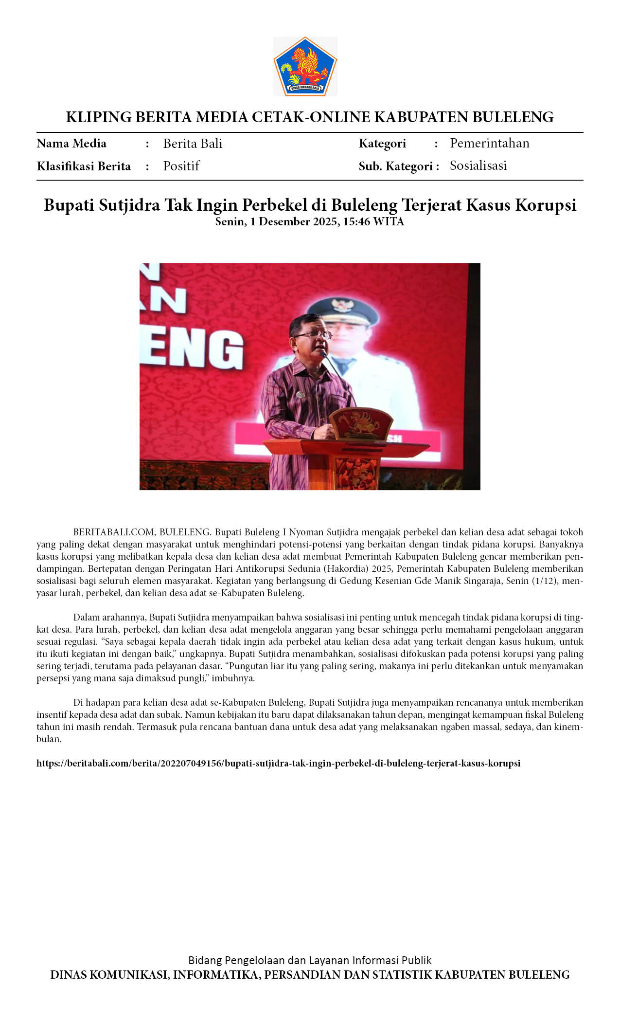 Kliping Kategori Pemerintahan Edisi 02 Desember 2025