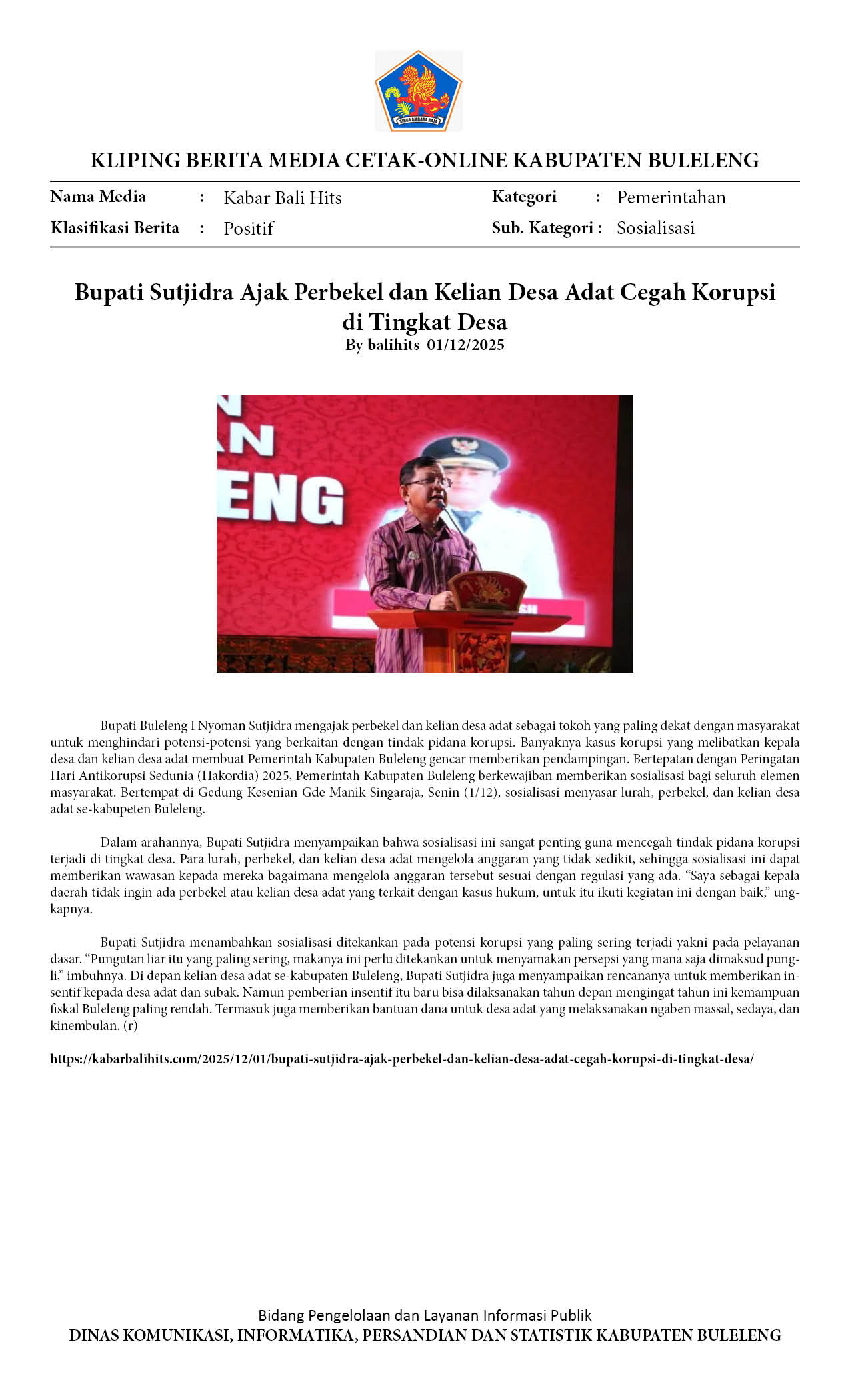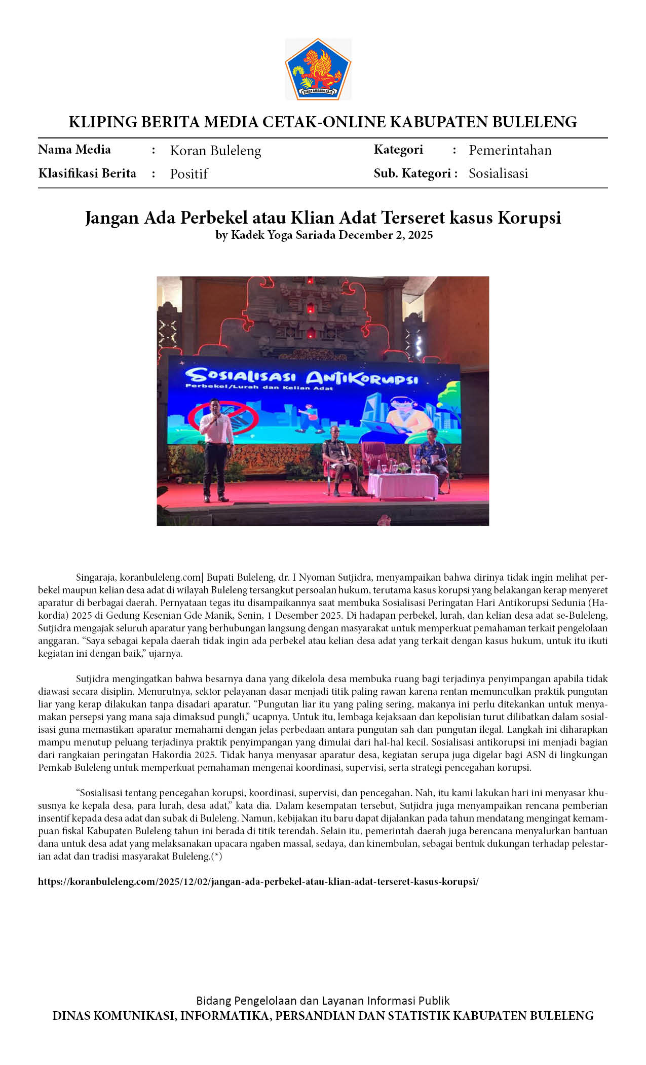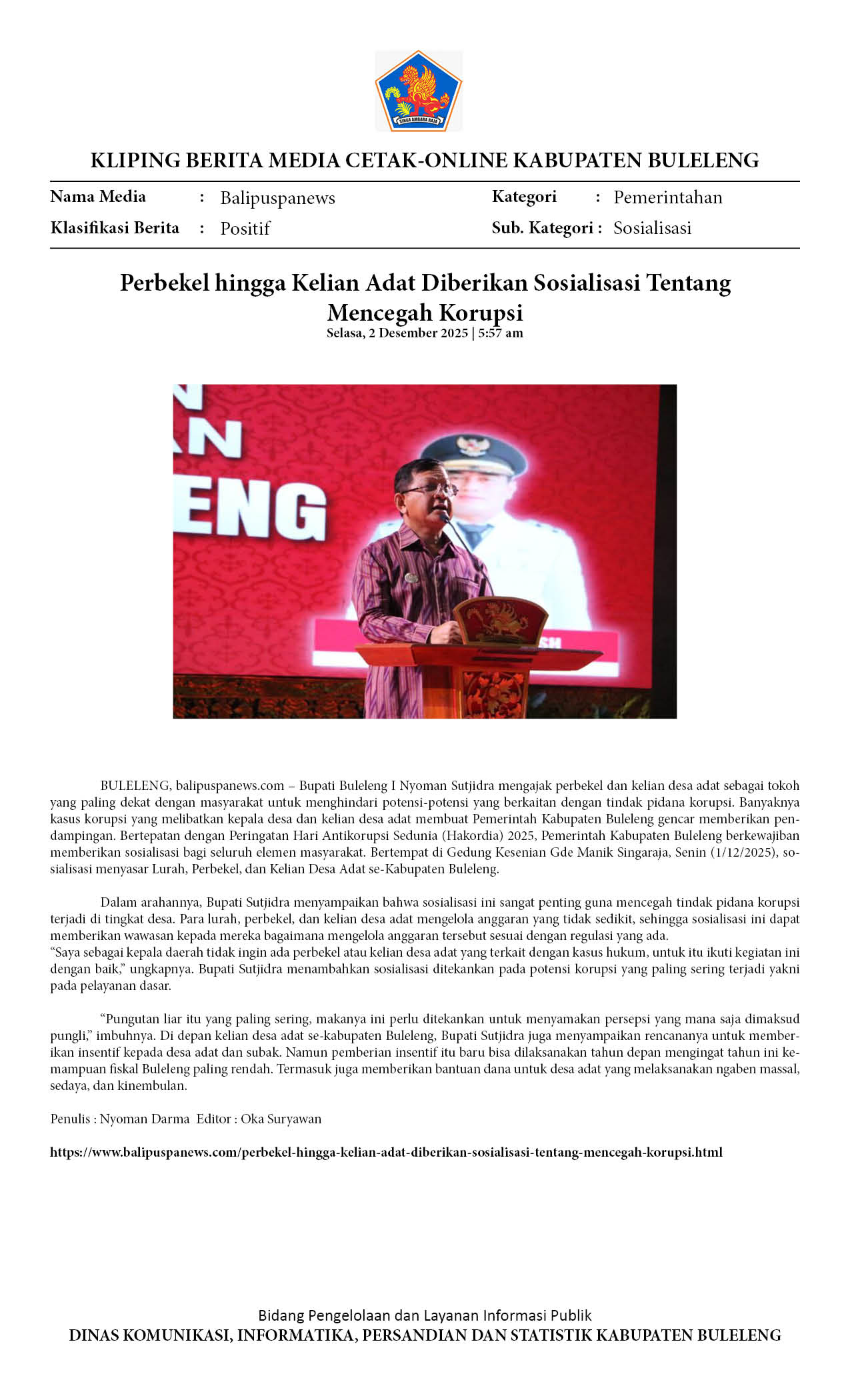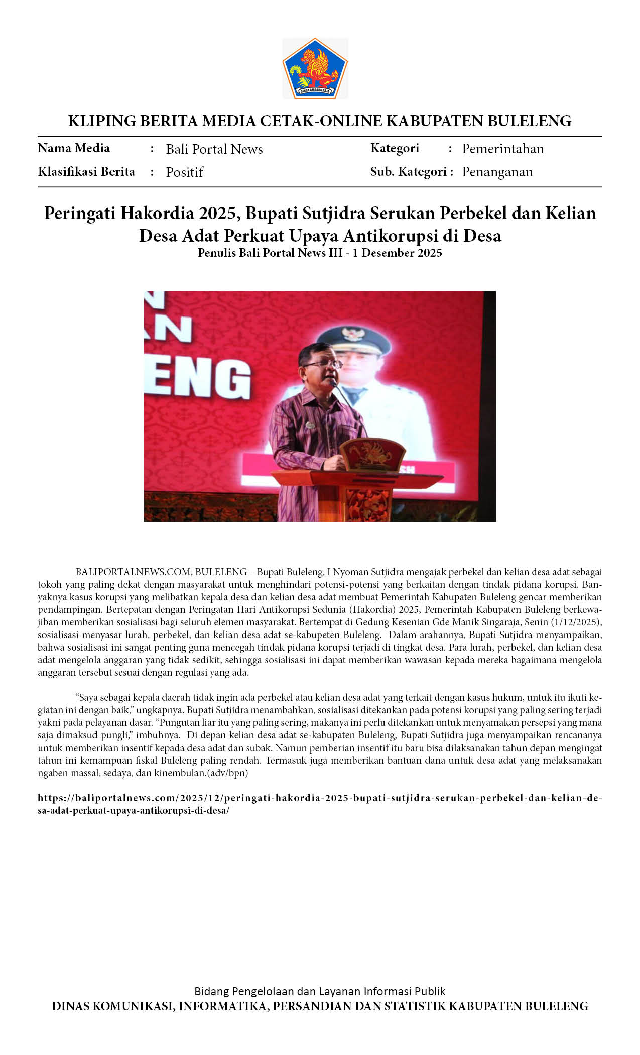Kliping Kategori Pemerintahan Edisi 02 Desember 2025