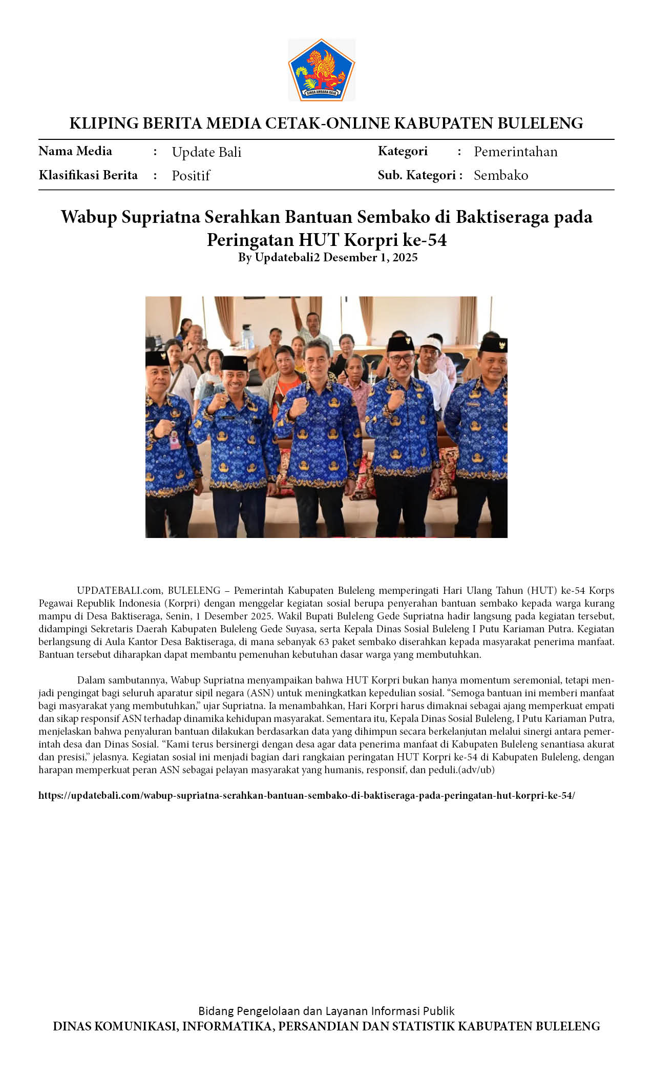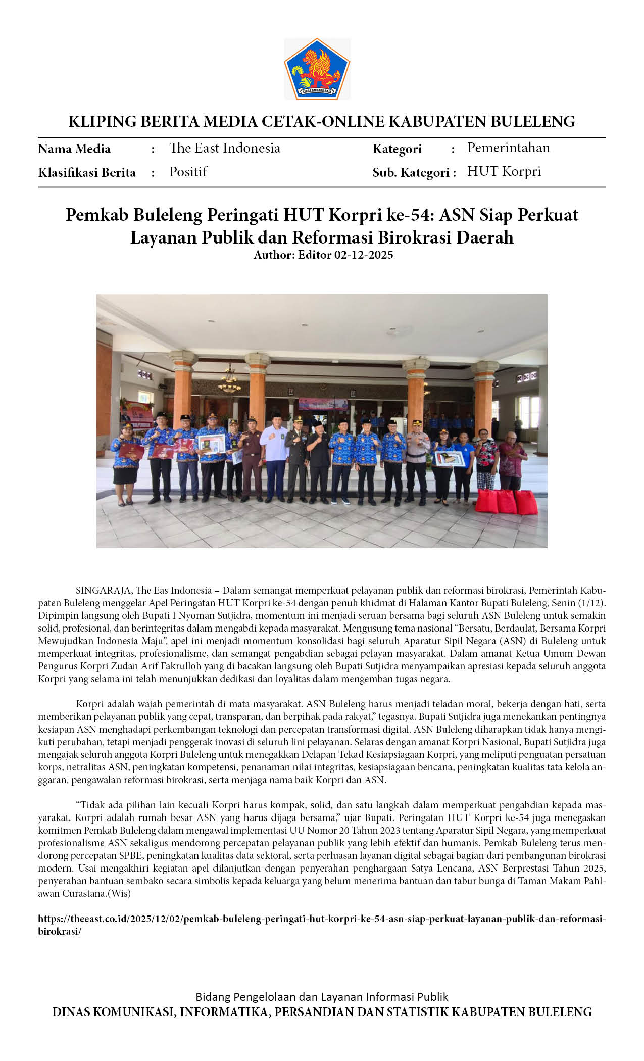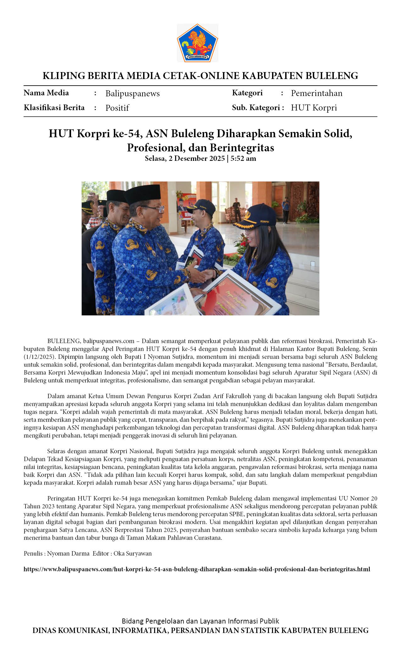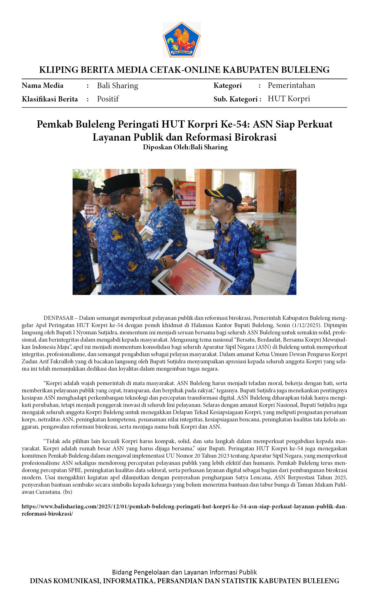 PEMKAB BULELENG PERINGATI HUT KORPRI KE-54: ASN SIAP PERKUAT LAYANAN PUBLIK DAN REFORMASI BIROKRASI DAERAH