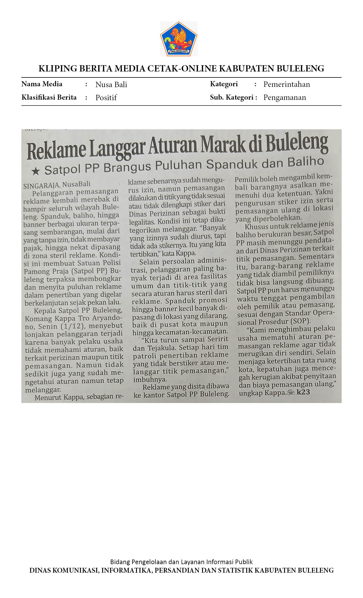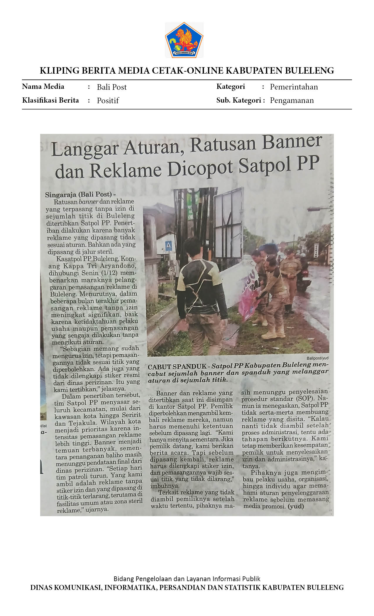 REKLAME LANGGAR ATURAN MARAK DI BULELENG, SATPOL PP BERANGUS PULUHAN SPANDUK DAN BALIHO