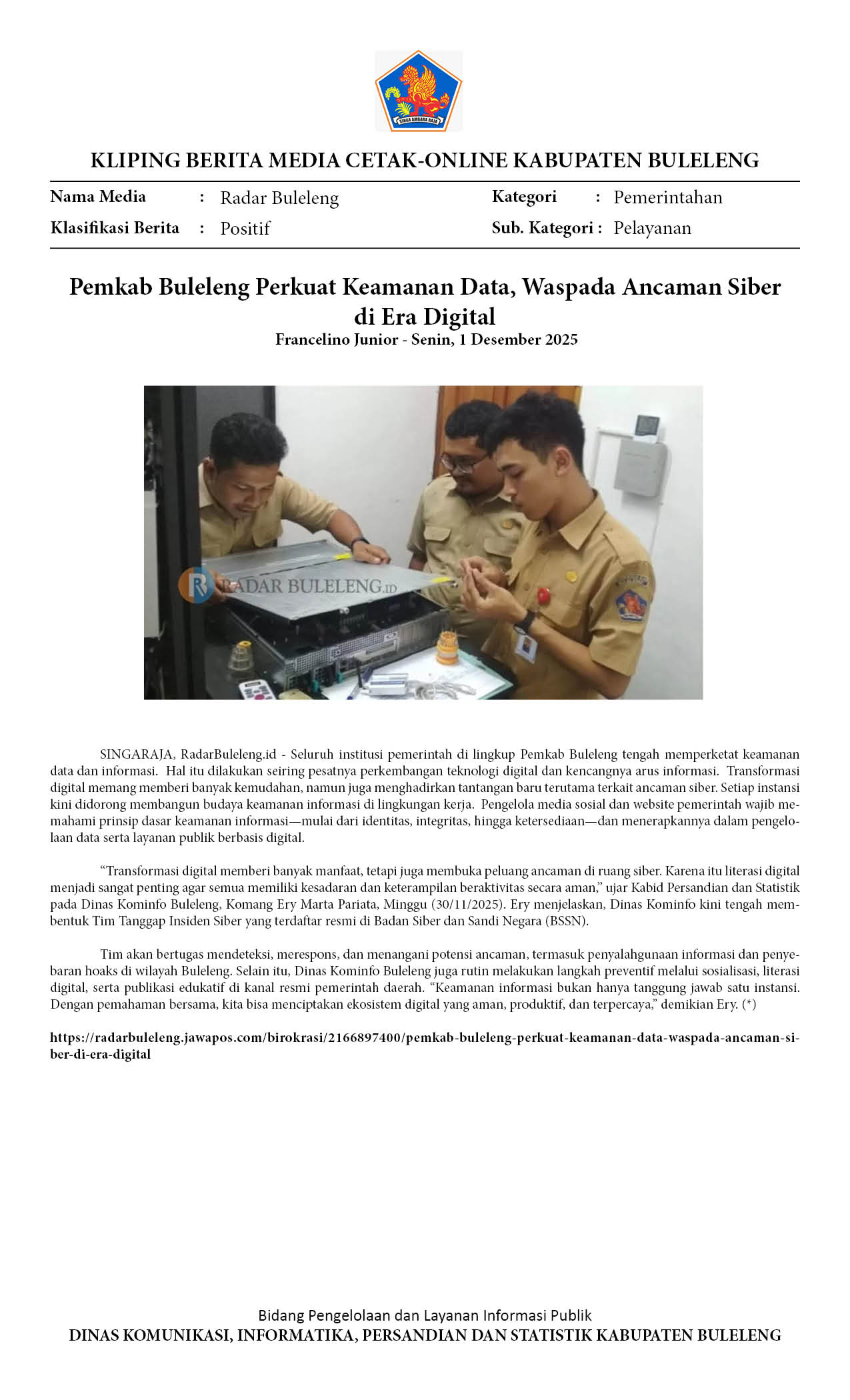 PEMKAB BULELENG PERKUAT KEAMANAN DATA, WASPADA ANCAMAN SIBER DI ERA DIGITAL