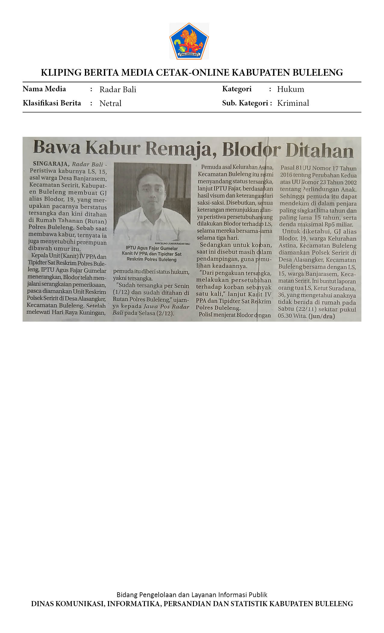 BAWA KABUR REMAJA, BLODOR DITAHAN