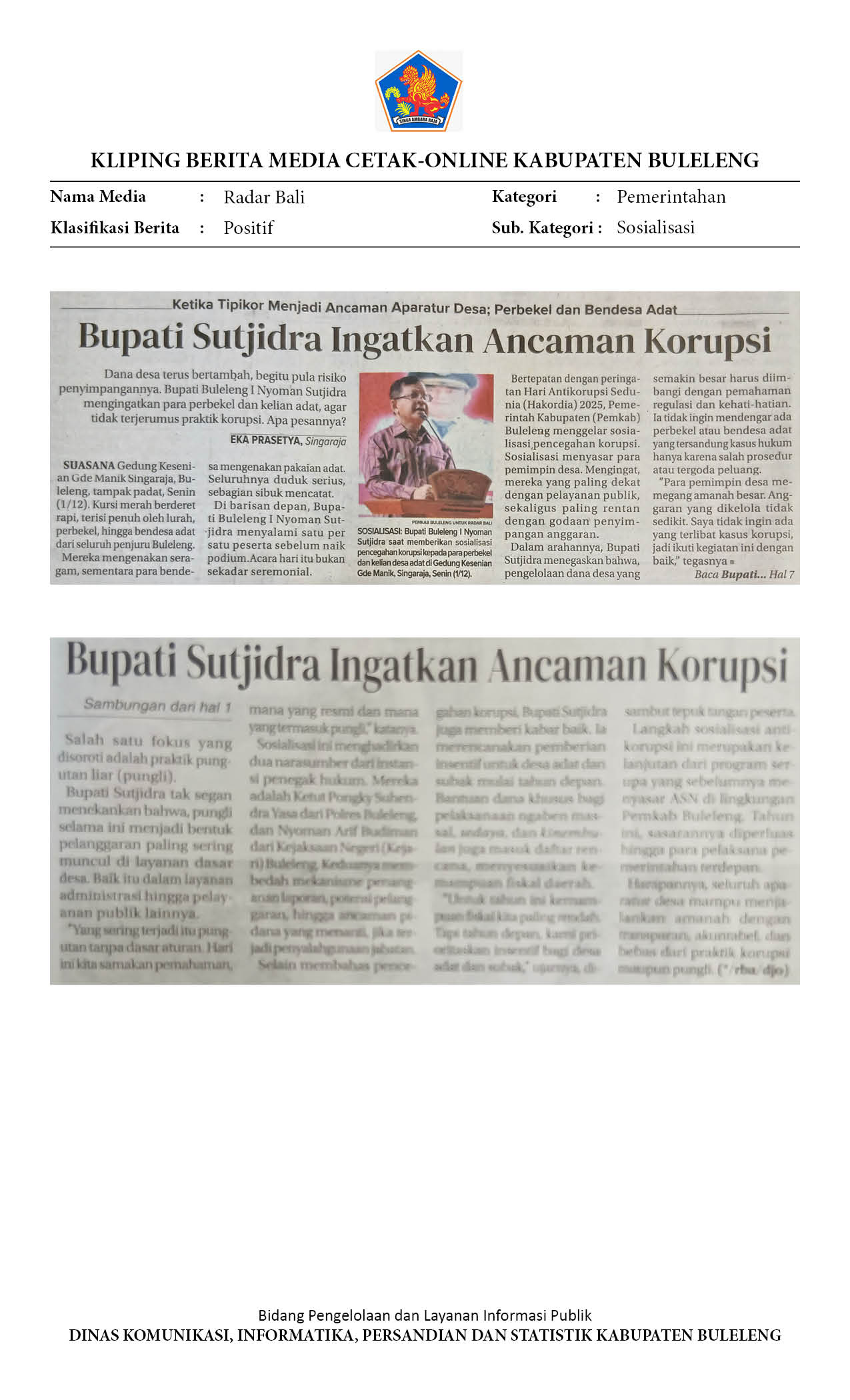 BUPATI SUTJIDRA INGATKAN ANCAMAN KORUPSI