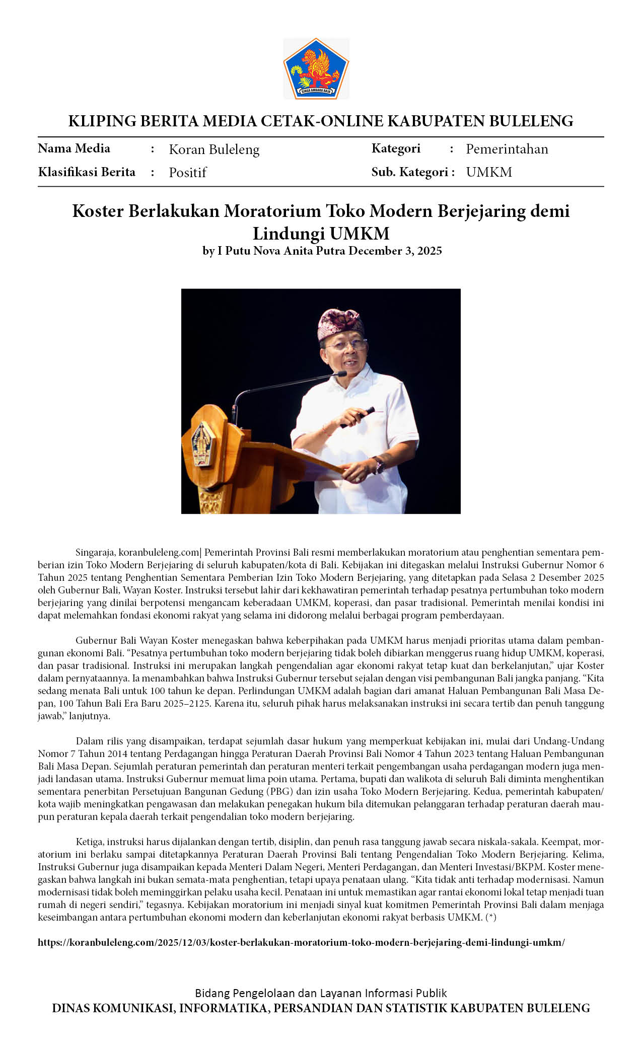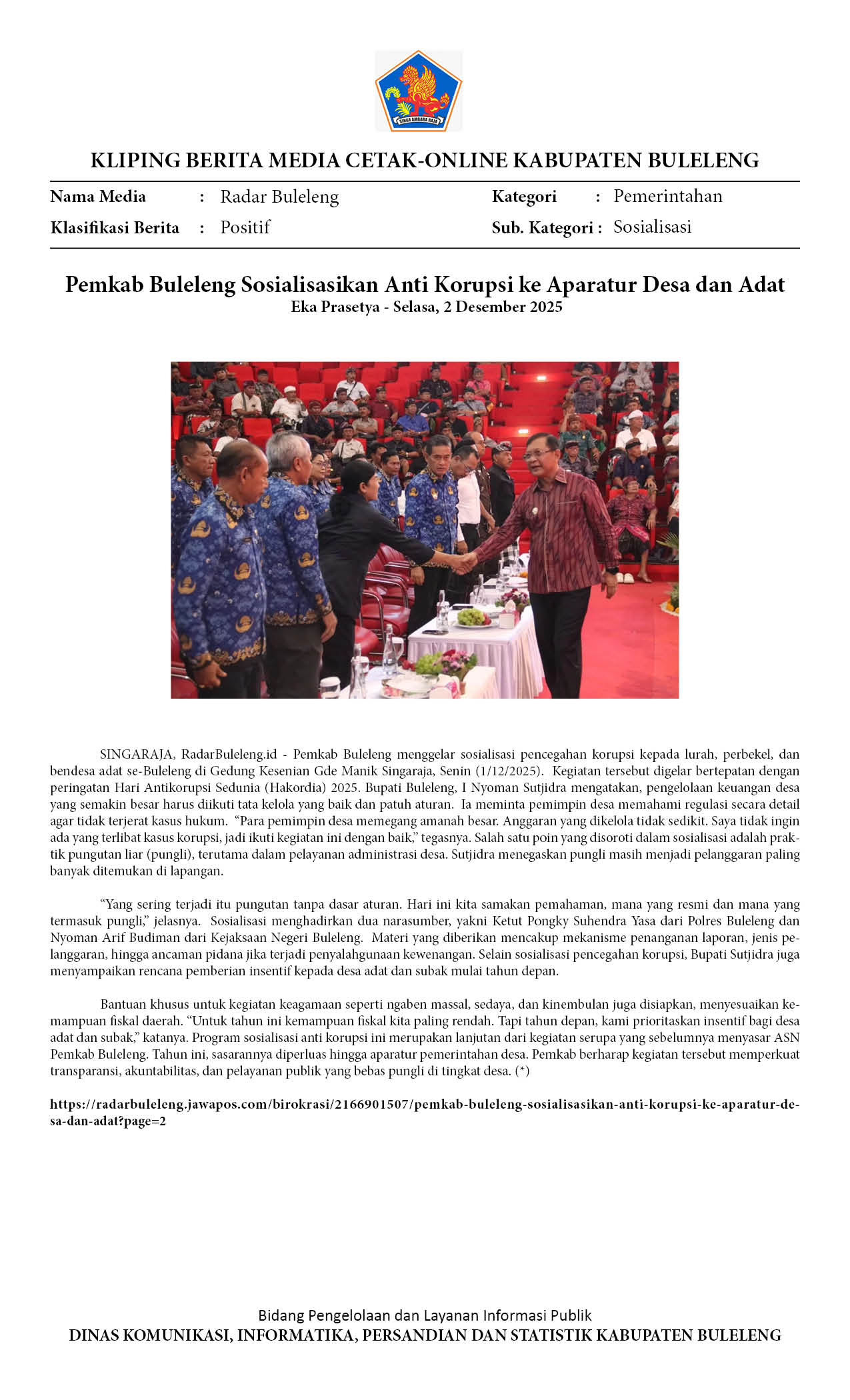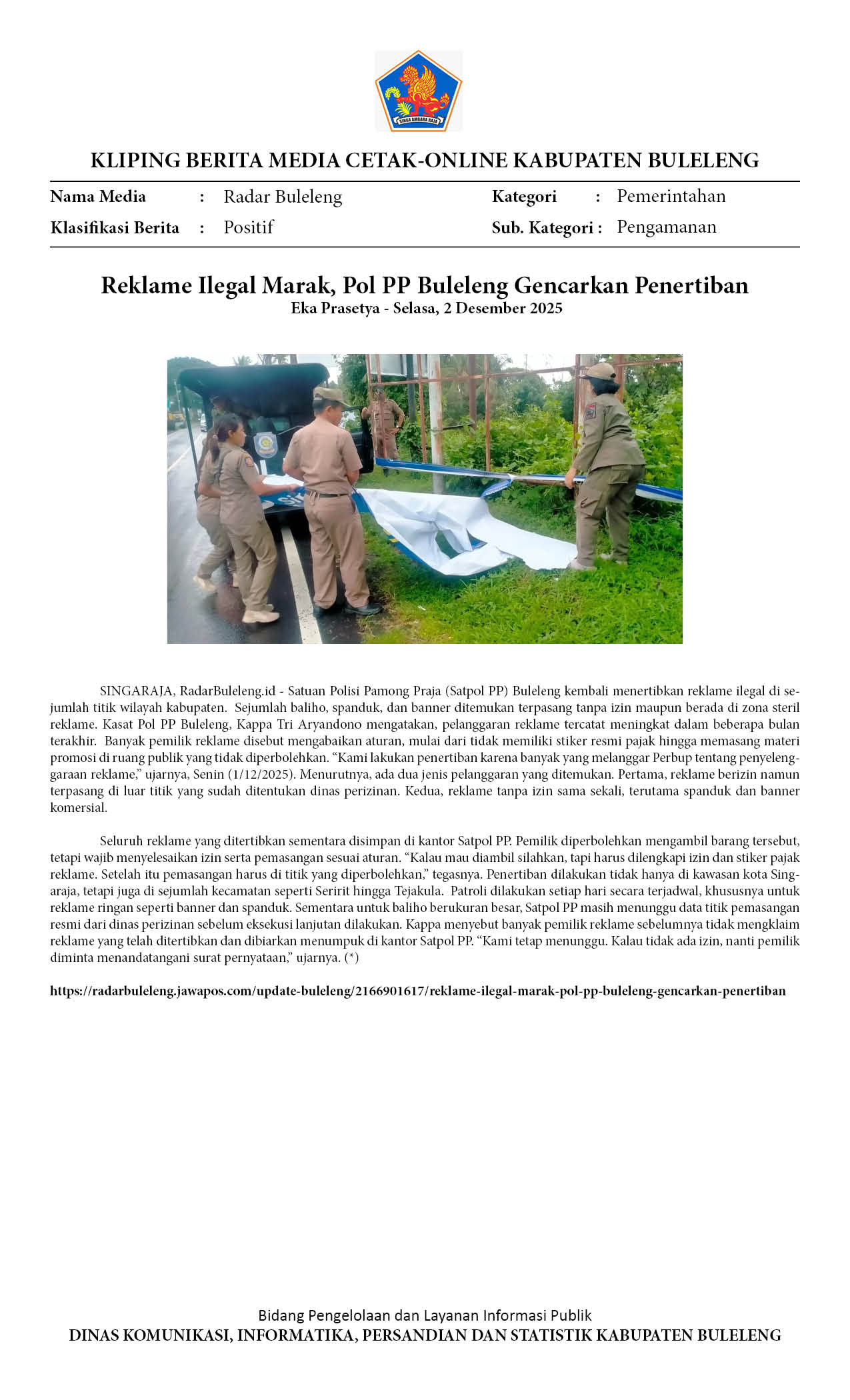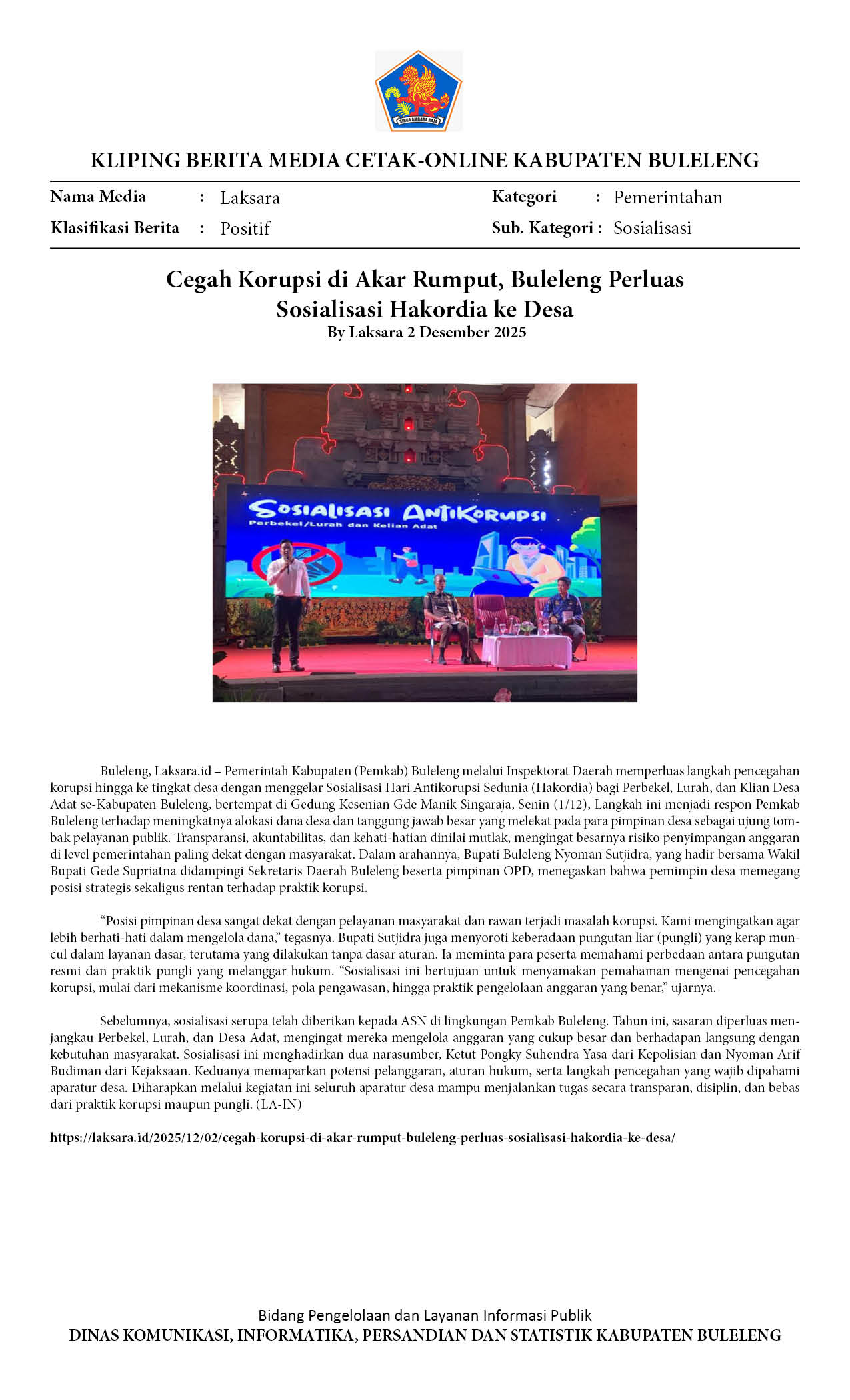 Kliping Kategori Pemerintahan Edisi 03 Desember 2025