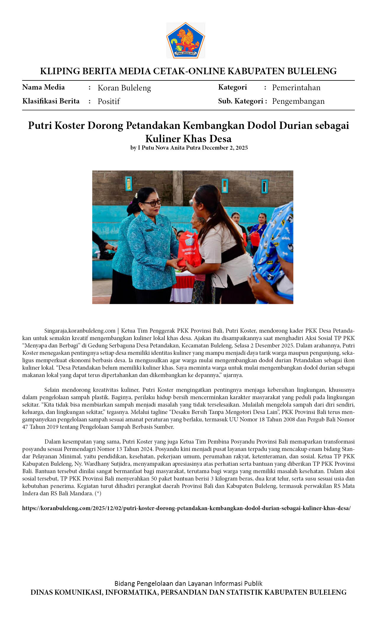PUTRI KOSTER DORONG PETANDAKAN HADIRKAN KULINER IKON DESA LEWAT KREATIVITAS KADER PKK