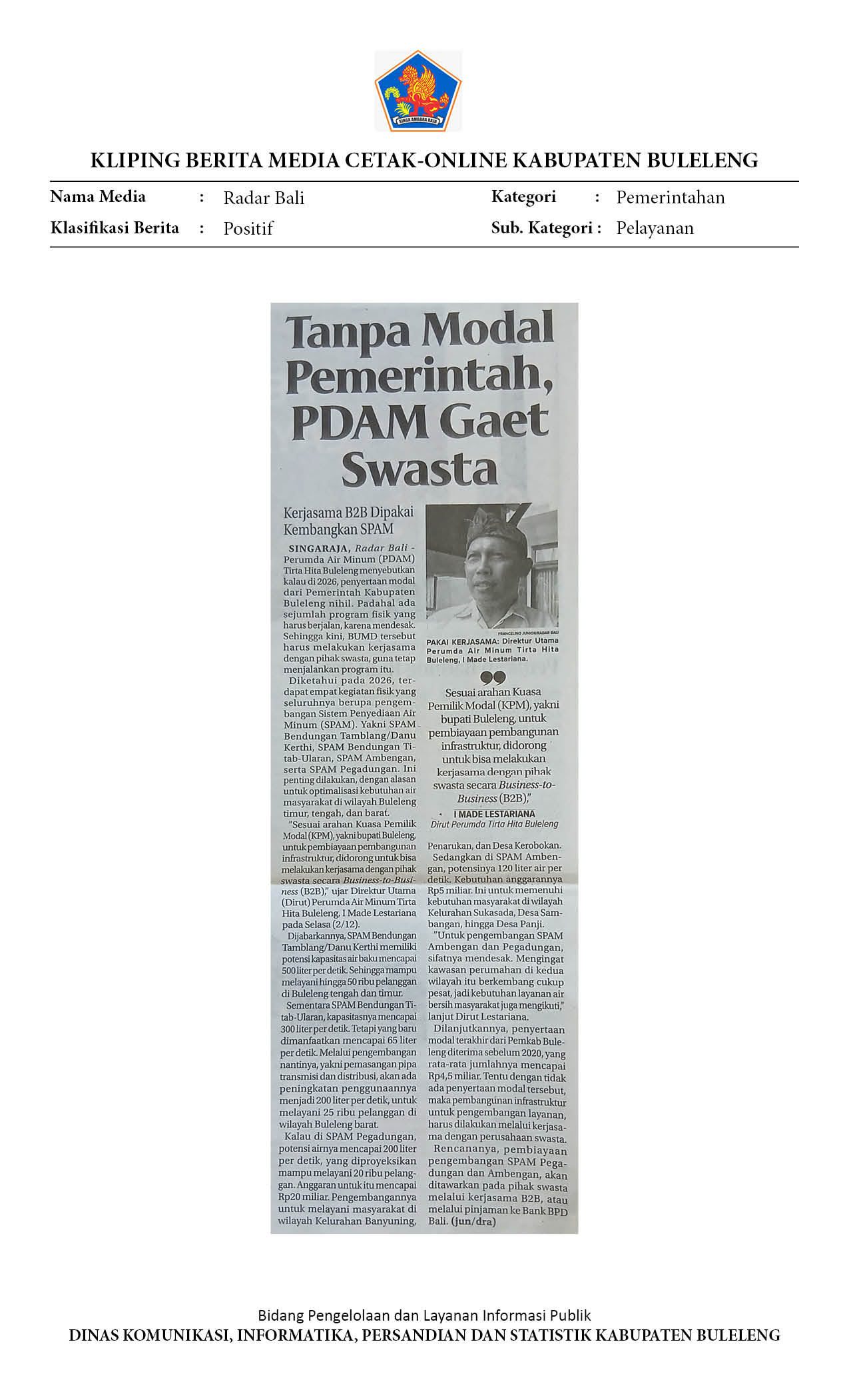 TANPA MODAL PEMERINTAH, PDAM GAET SWASTA