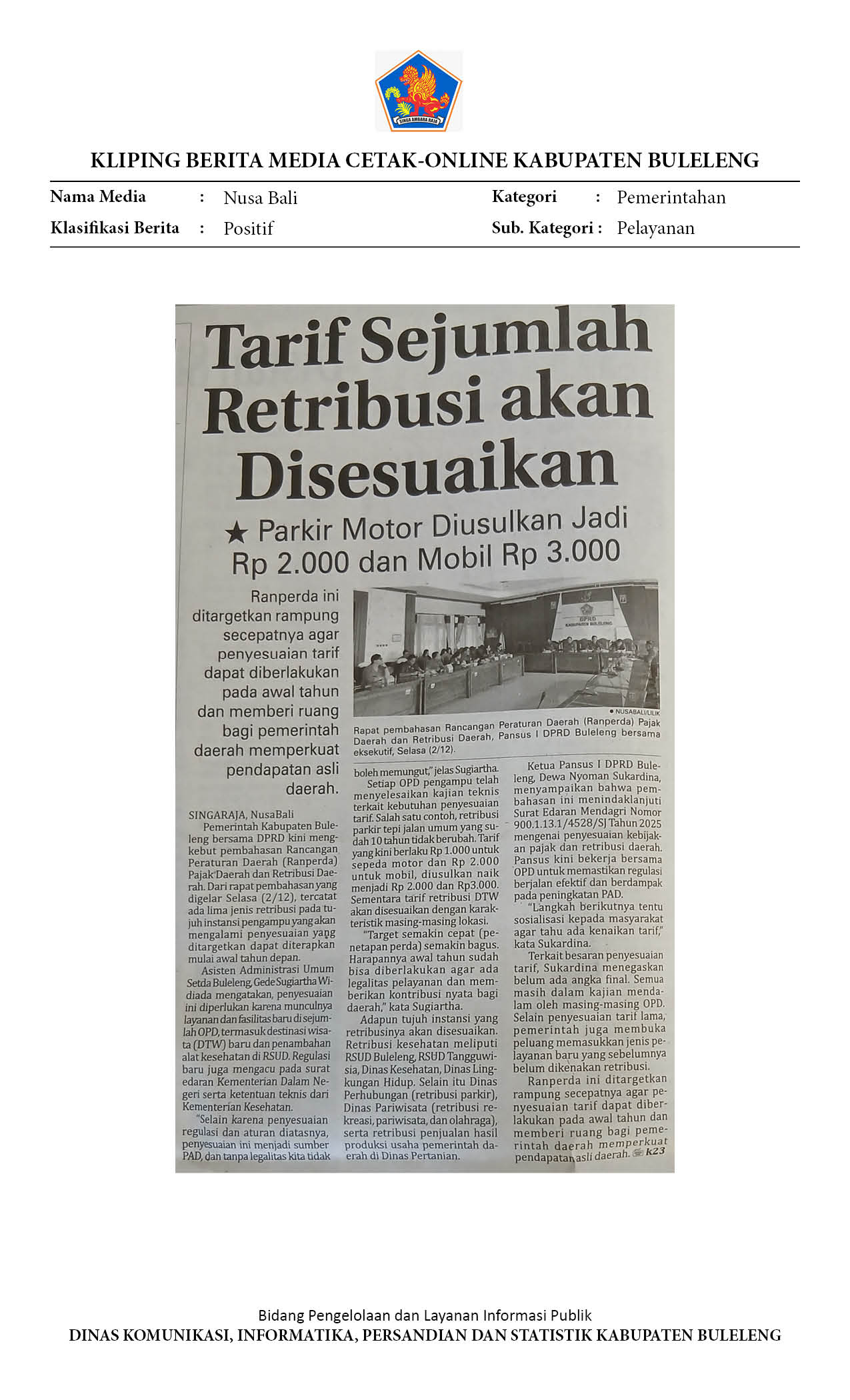 TARIF SEJUMLAH RETRIBUSI AKAN DISESUAIKAN
