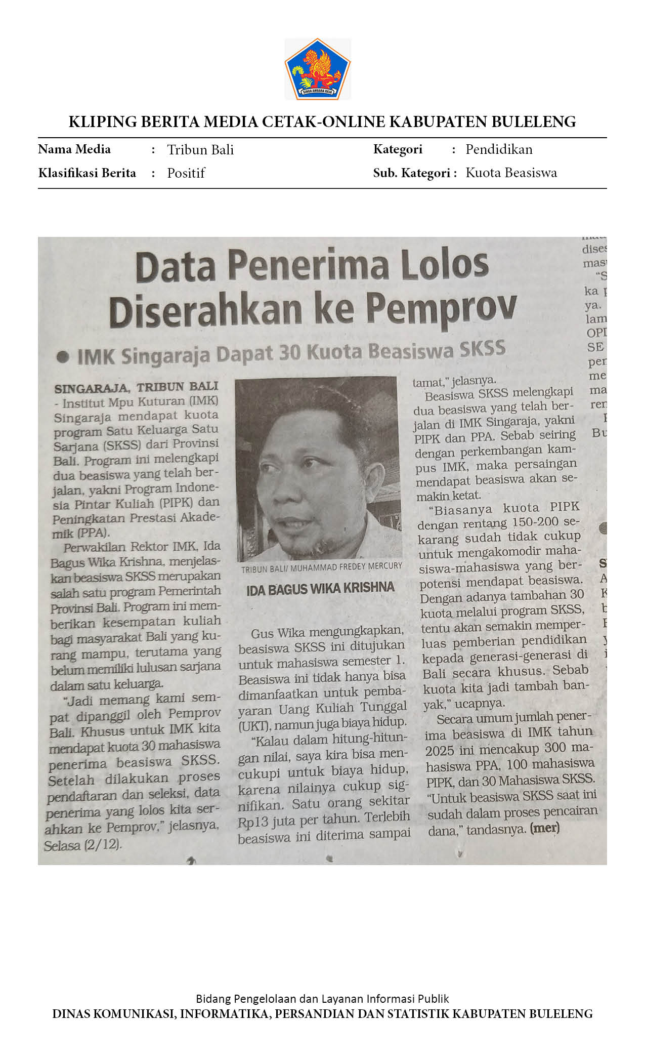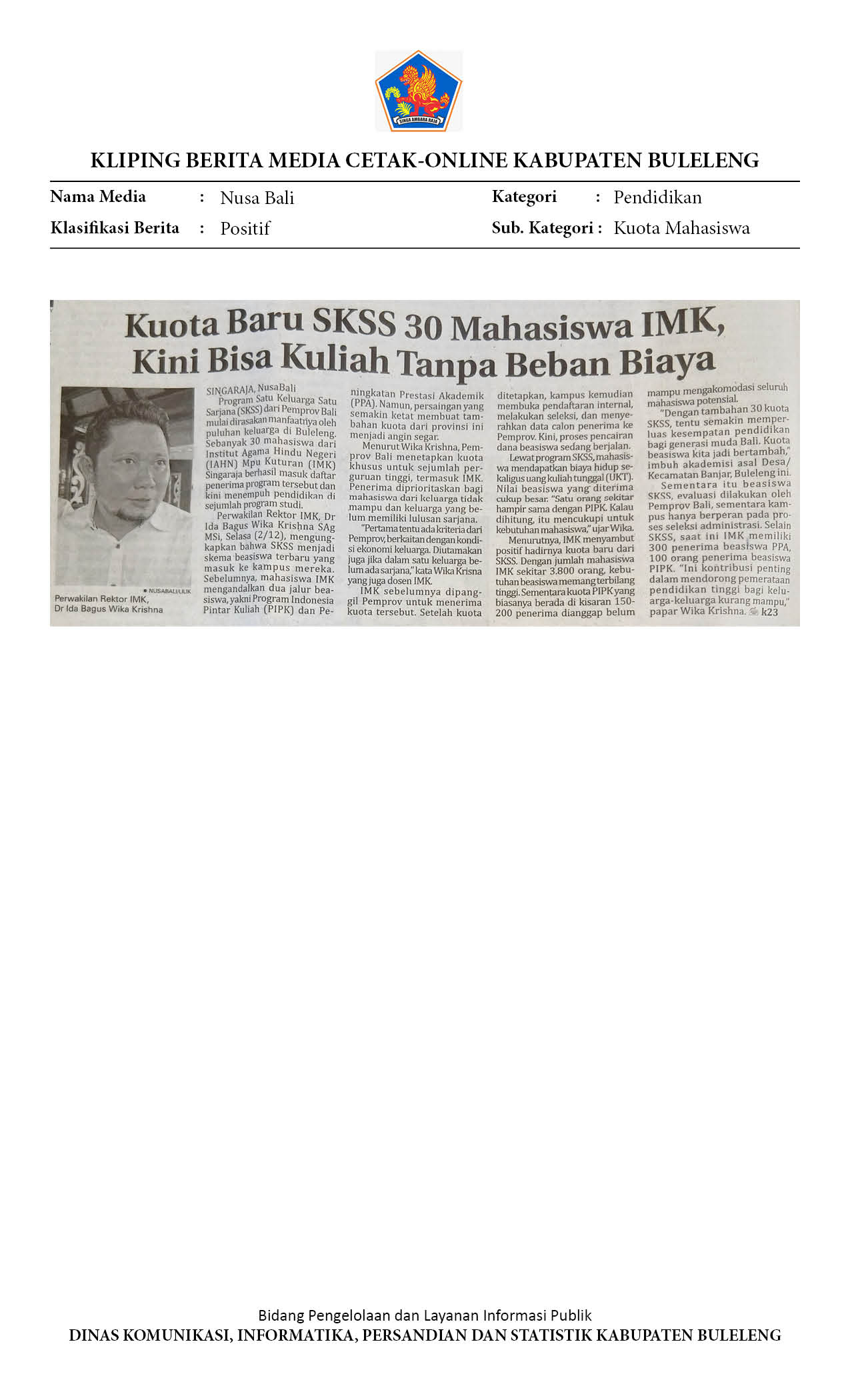 KUOTA BARU SKSS 30 MAHASISWA IMK, KINI BISA KULIAH TANPA BEBAN BIAYA