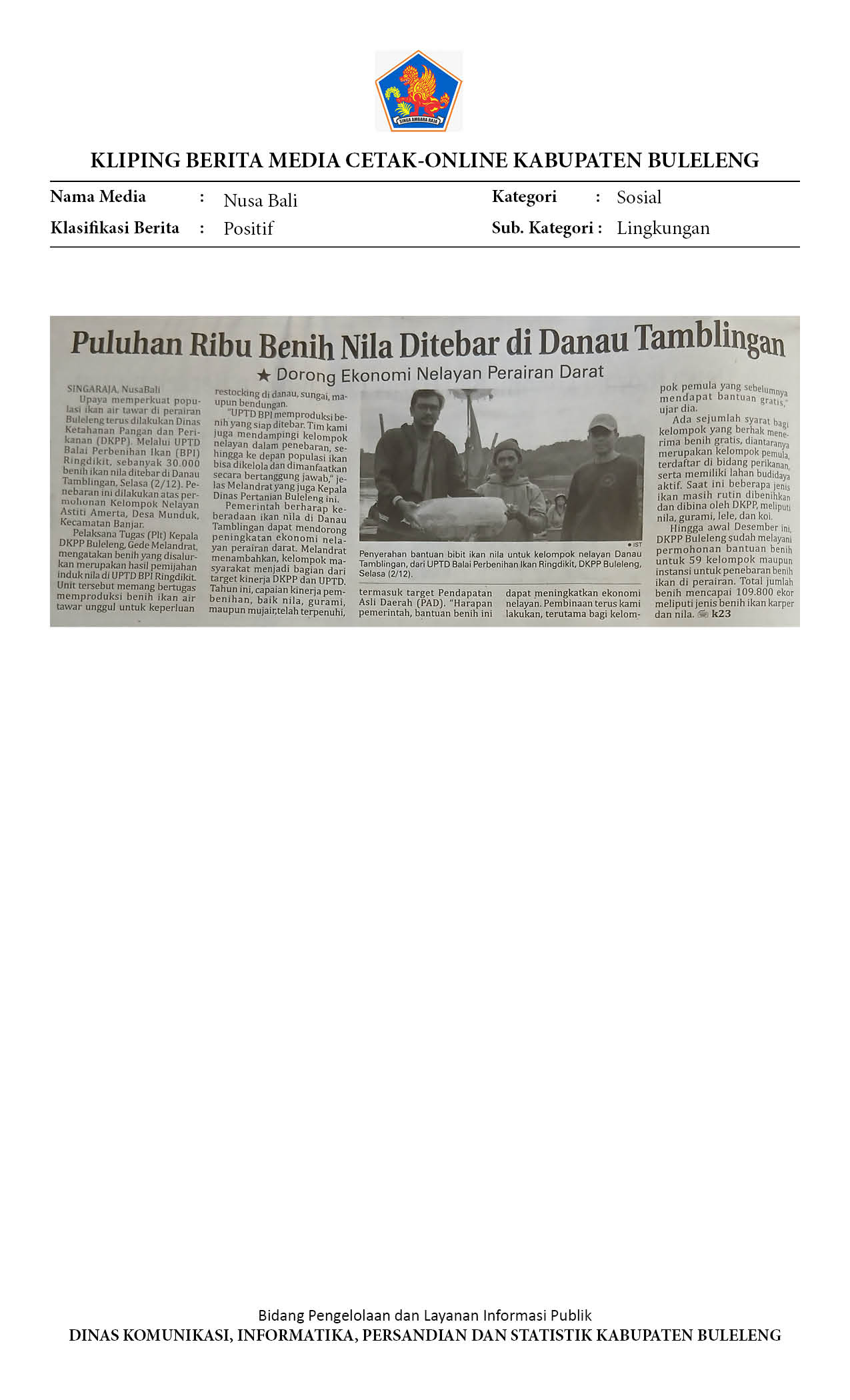 PULUHAN RIBU BENIH NILA DITEBAR DI DANAU TAMBLINGAN