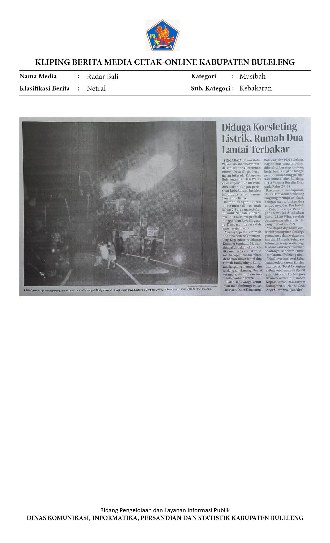 DIDUGA KORSLETING, RUMAH DUA LANTAI DI GITGIT LUDES TERBAKAR