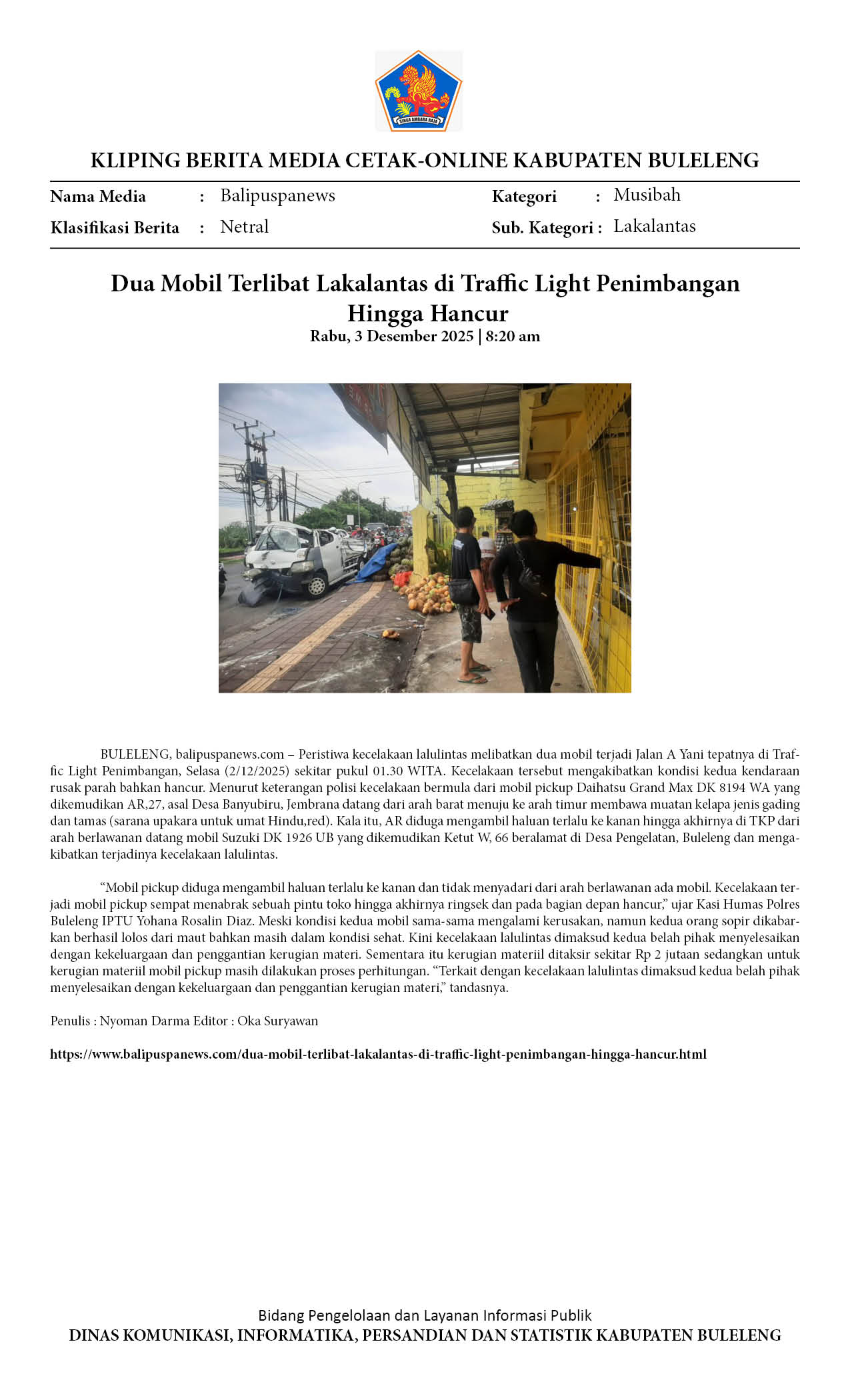 DUA MOBIL TERLIBAT LAKALANTAS DI TRAFFIC LIGHT PENIMBANGAN HINGGA HANCUR