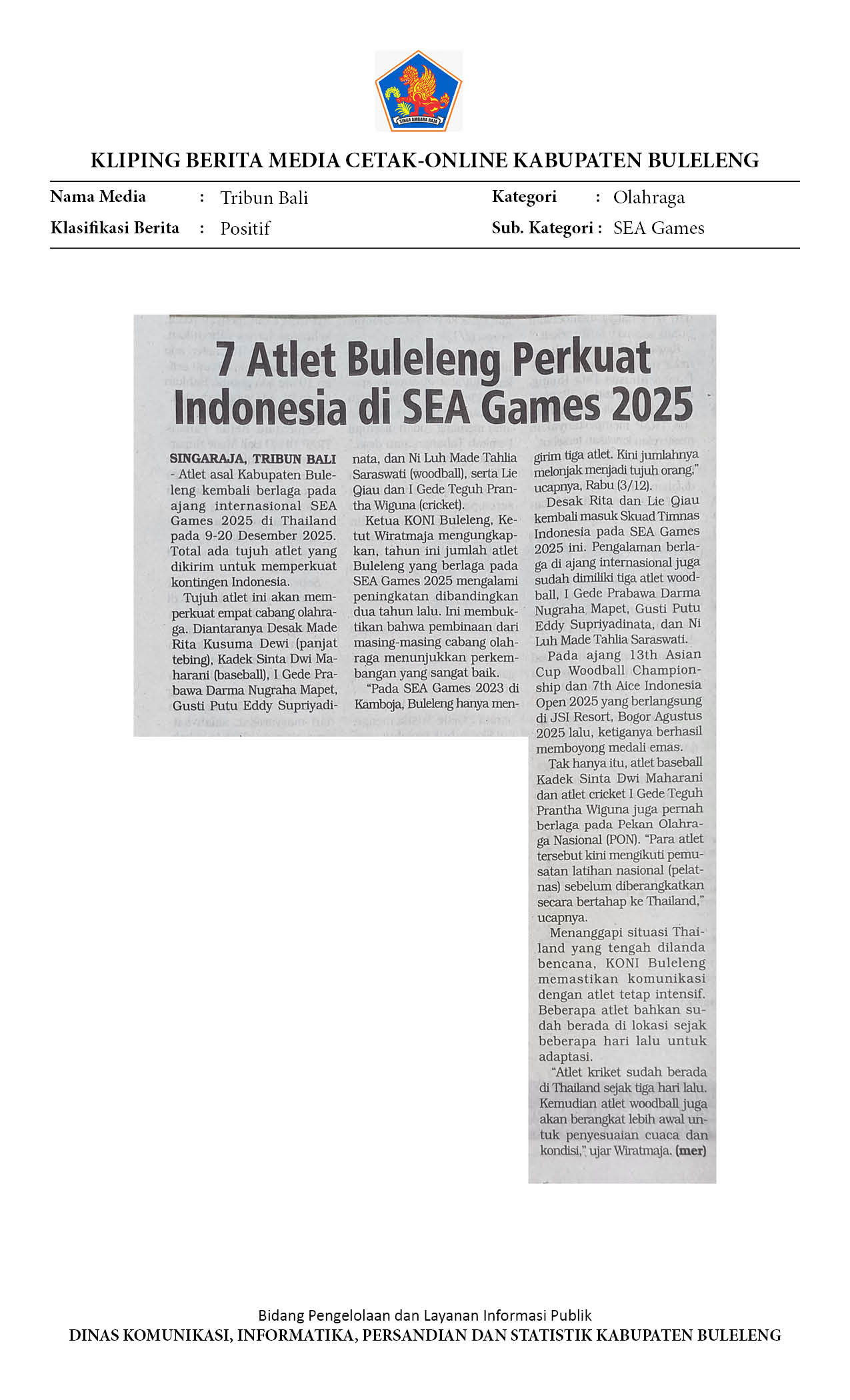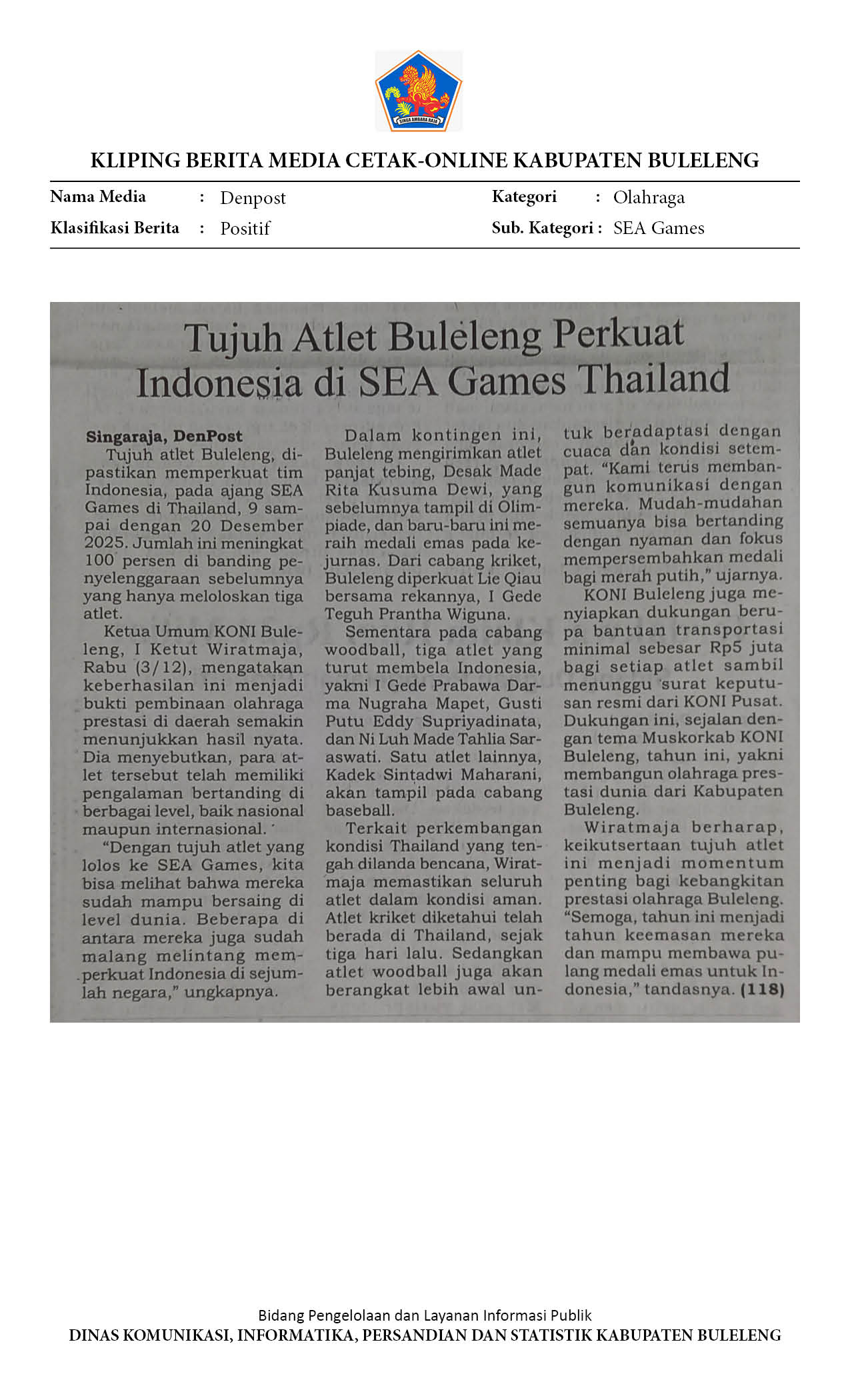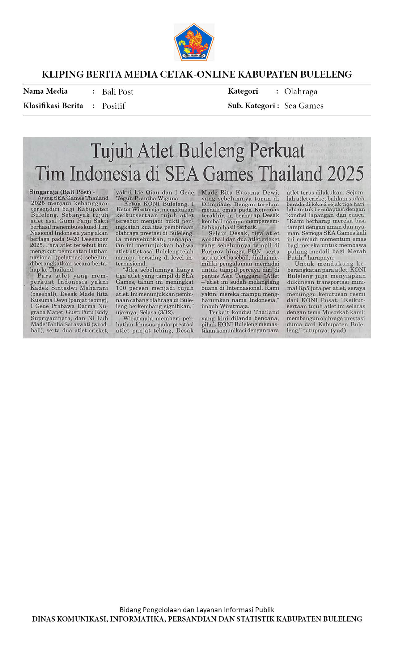 Kliping Kategori Olahraga Edisi 04 Desember 2025