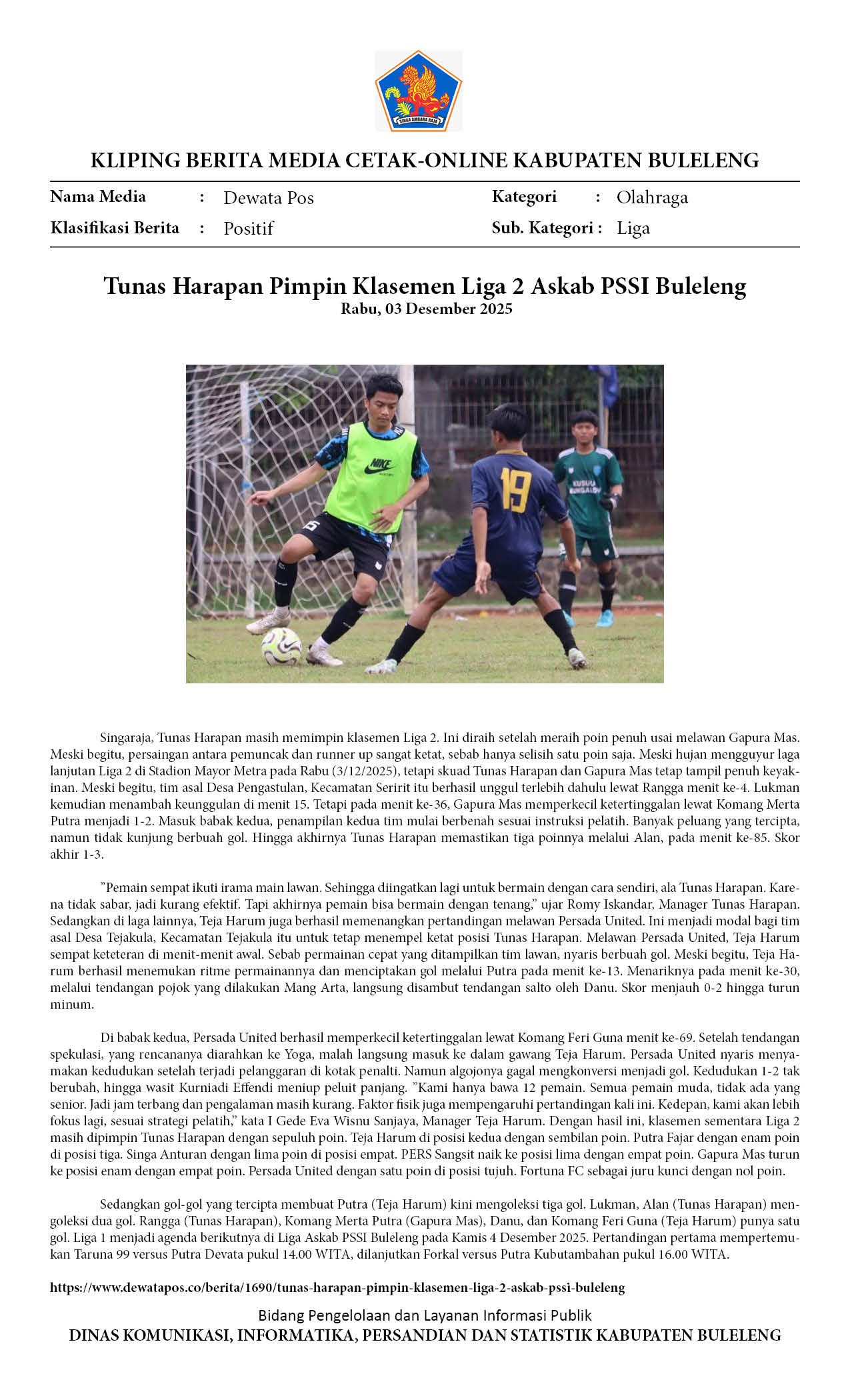 TUNAS HARAPAN PIMPIN KLASEMEN LIGA 2 ASKAB PSSI BULELENG