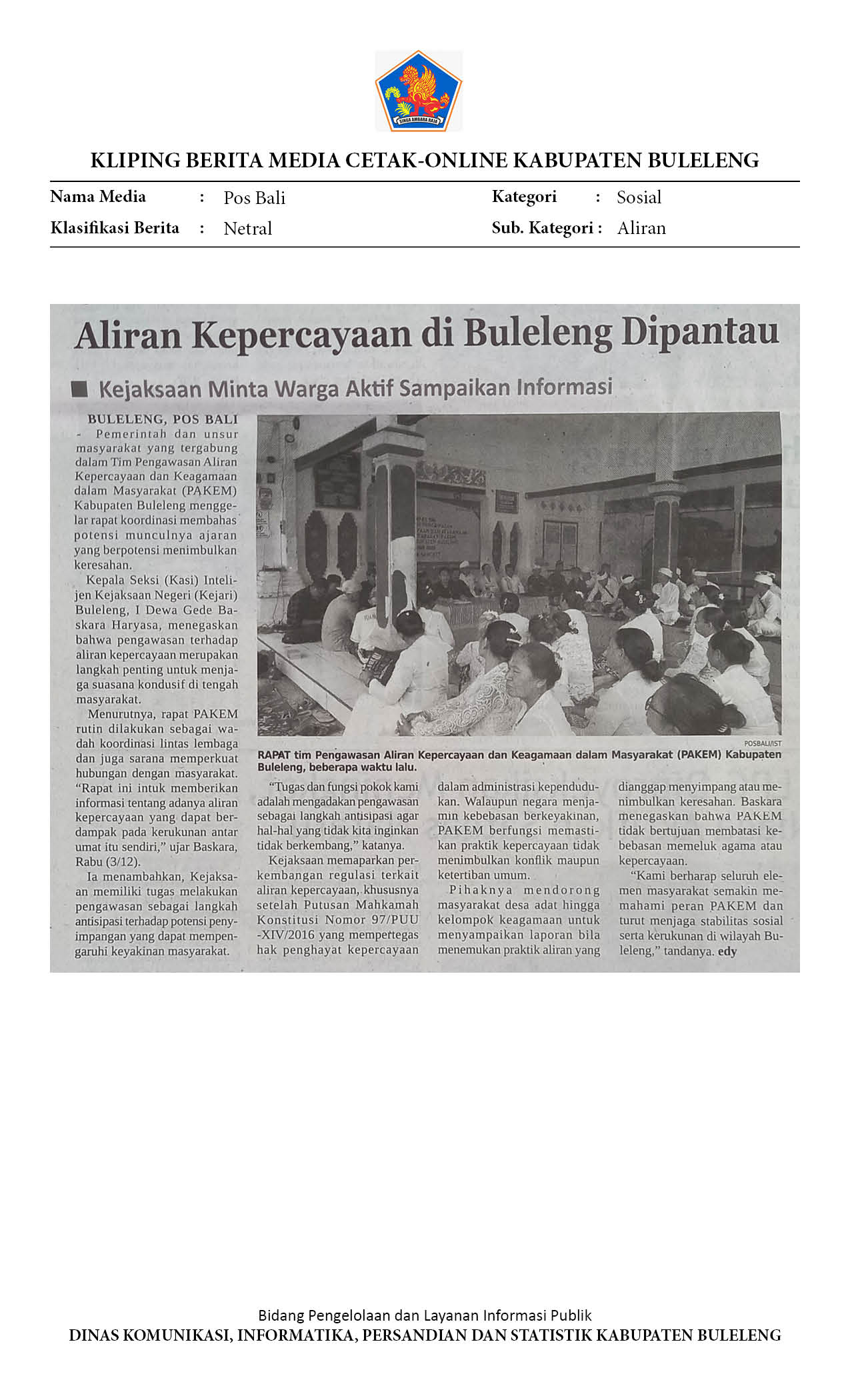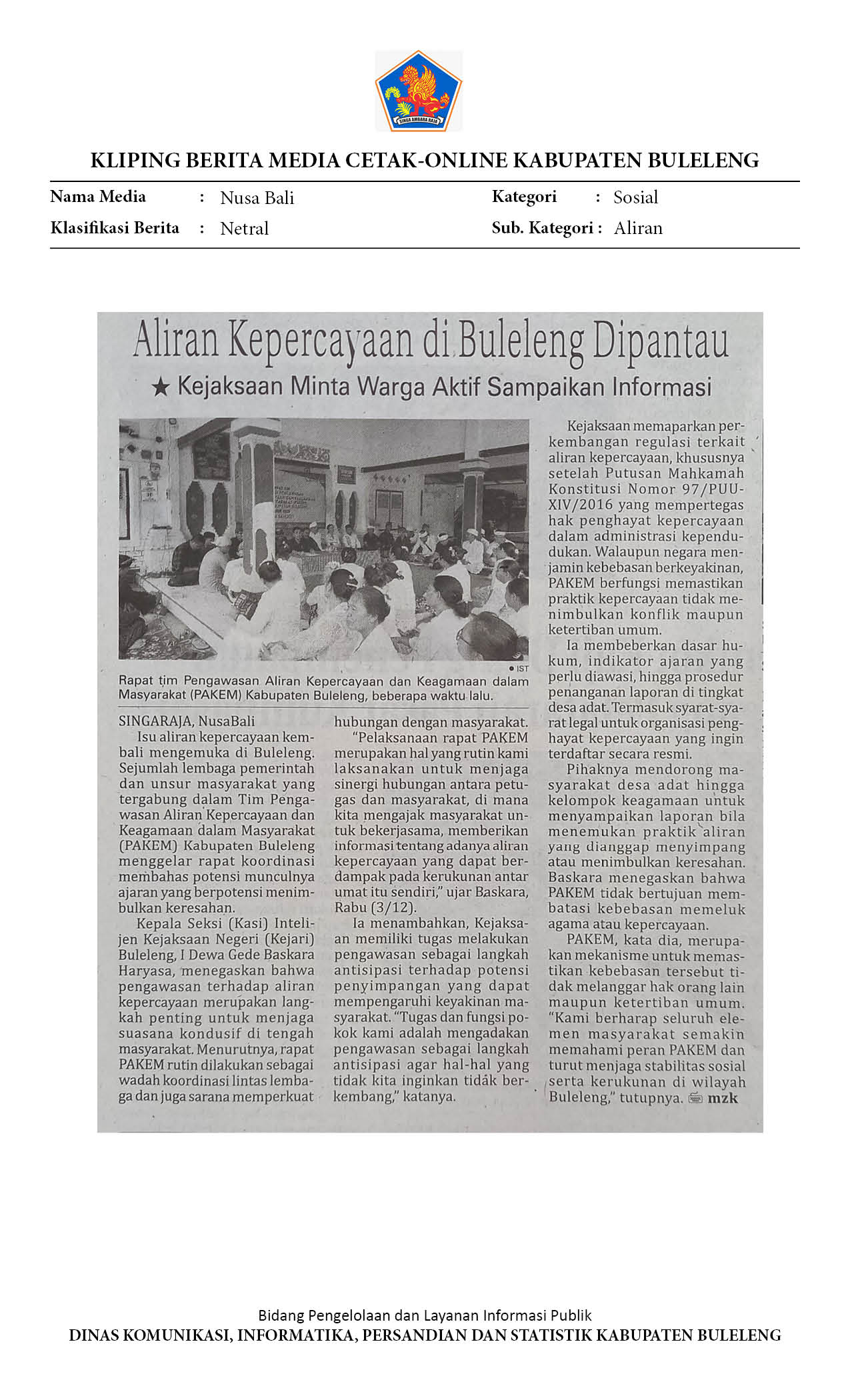 ALIRAN KEPERCAYAAN DI BULELENG DIPANTAU