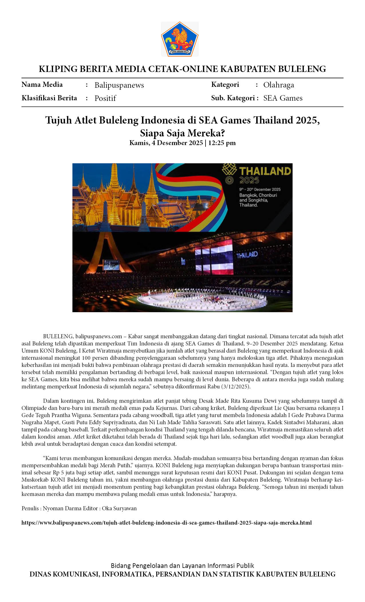 TUJUH ATLET BULELENG INDONESIA DI SEA GAMES THAILAND 2025, SIAPA SAJA MEREKA?