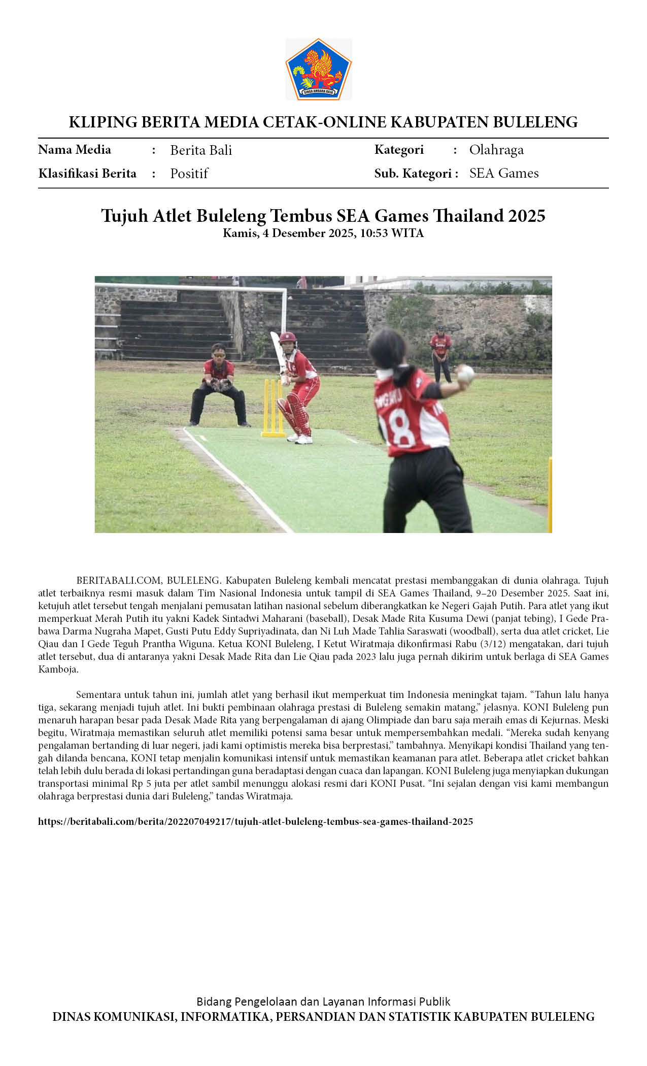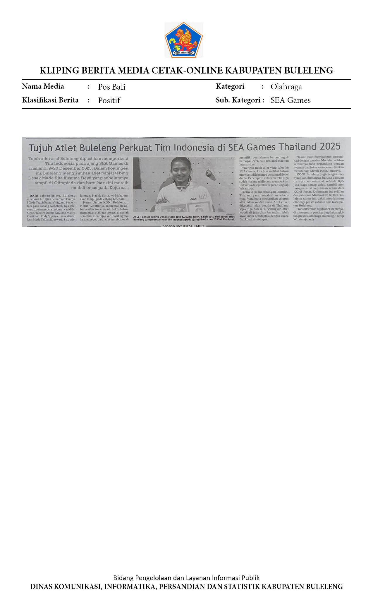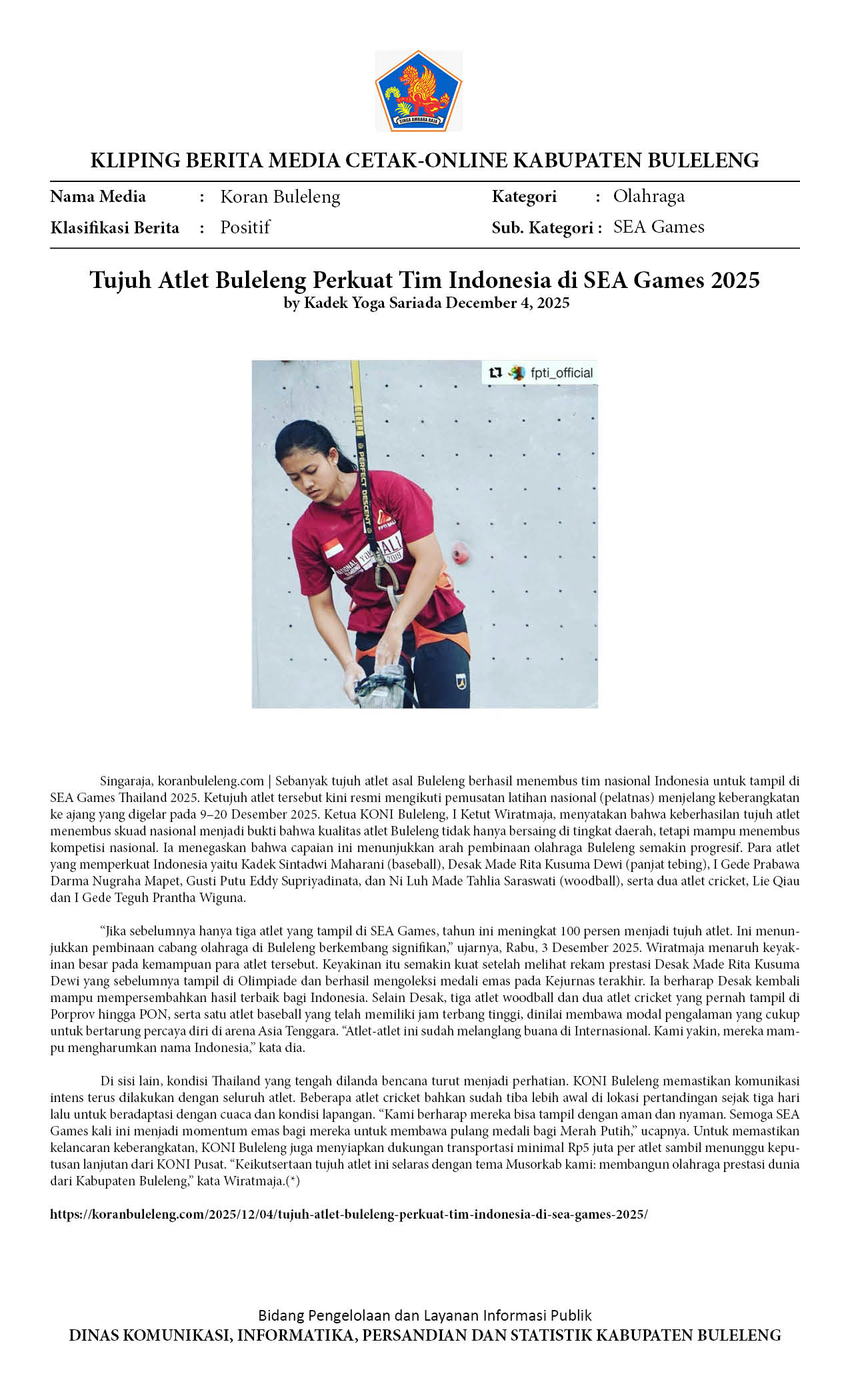 TUJUH ATLET BULELENG PERKUAT TIM INDONESIA DI SEA GAMES 2025