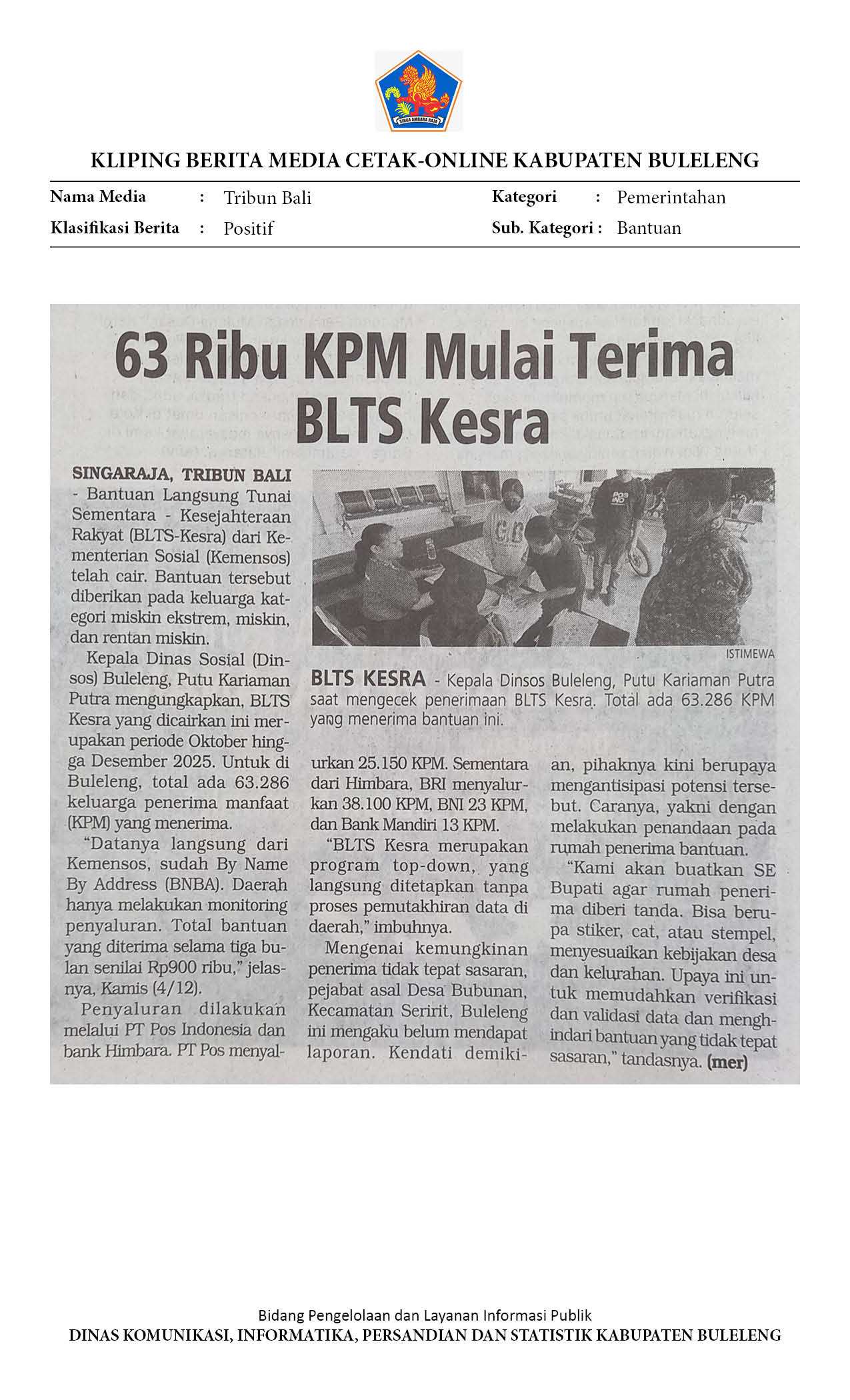 BLTS KESRA MULAI CAIR DITERIMA 63.286 KPM