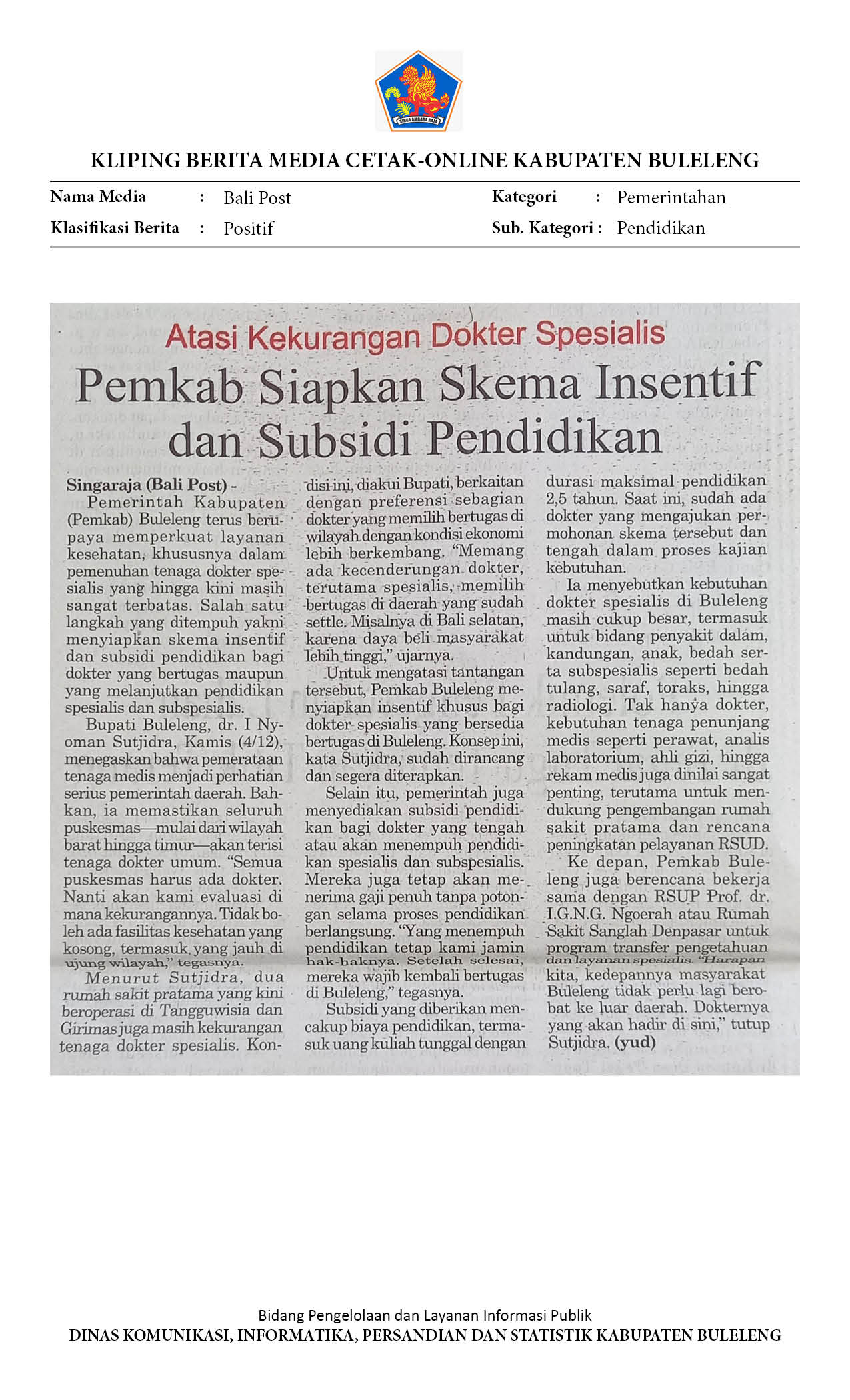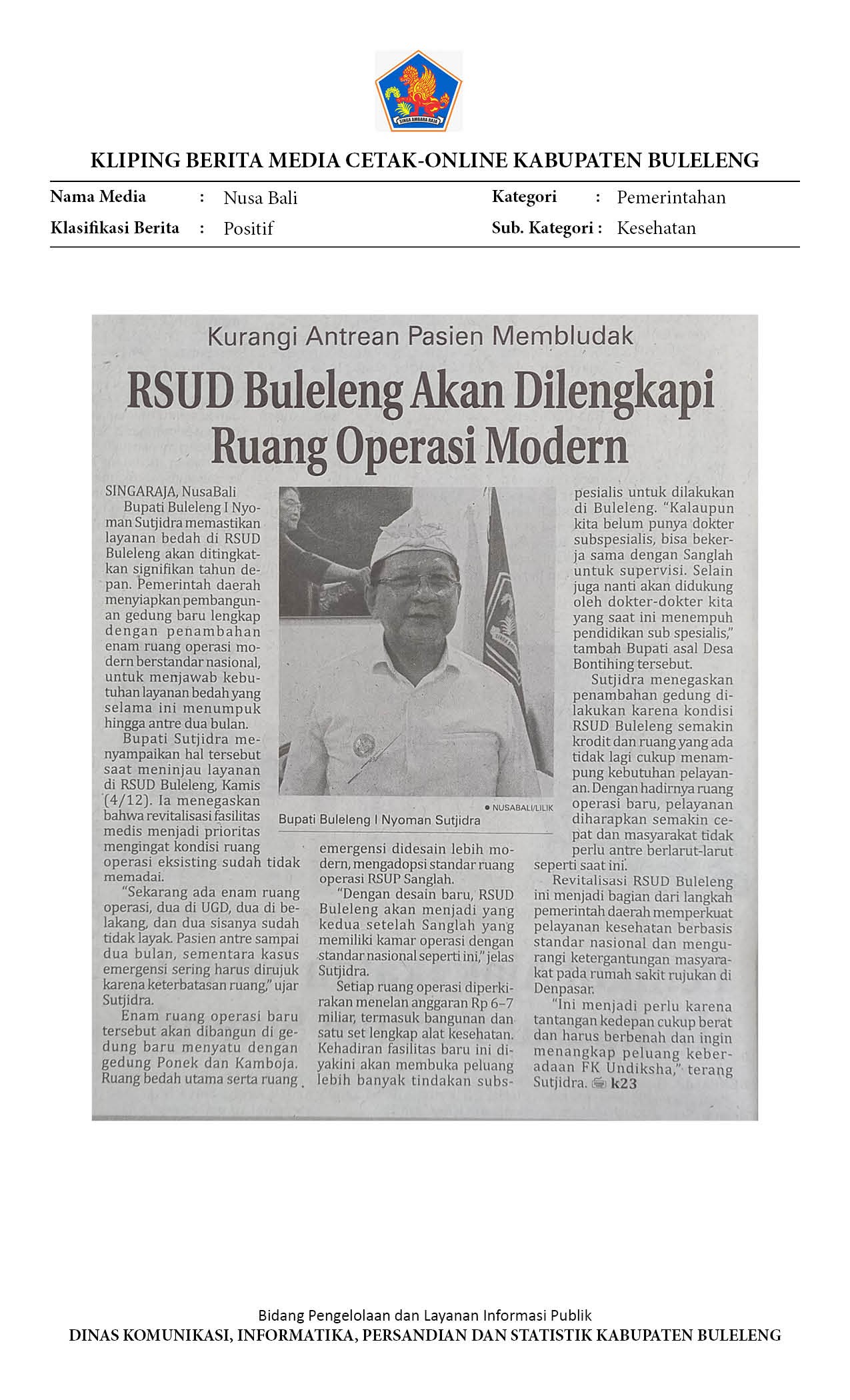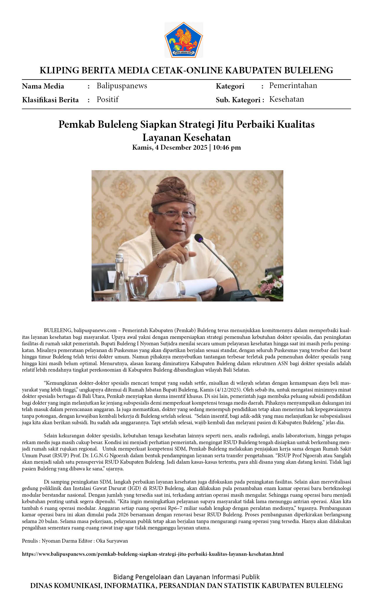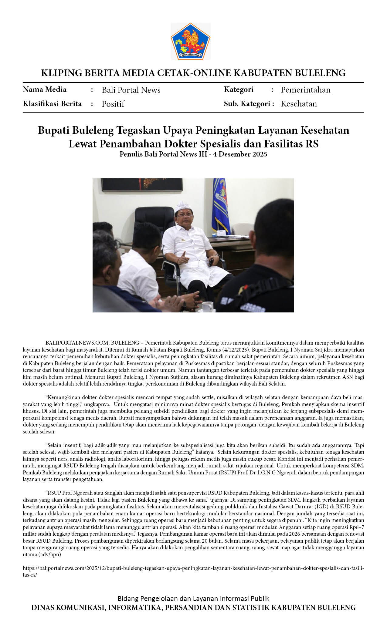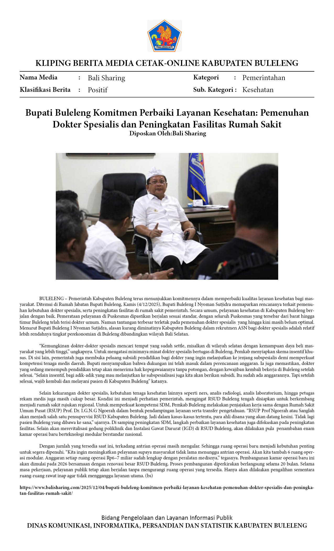 BUPATI BULELENG KOMITMEN PERBAIKI LAYANAN KESEHATAN: PEMENUHAN DOKTER SPESIALIS DAN PENINGKATAN FASILITAS RUMAH SAKIT