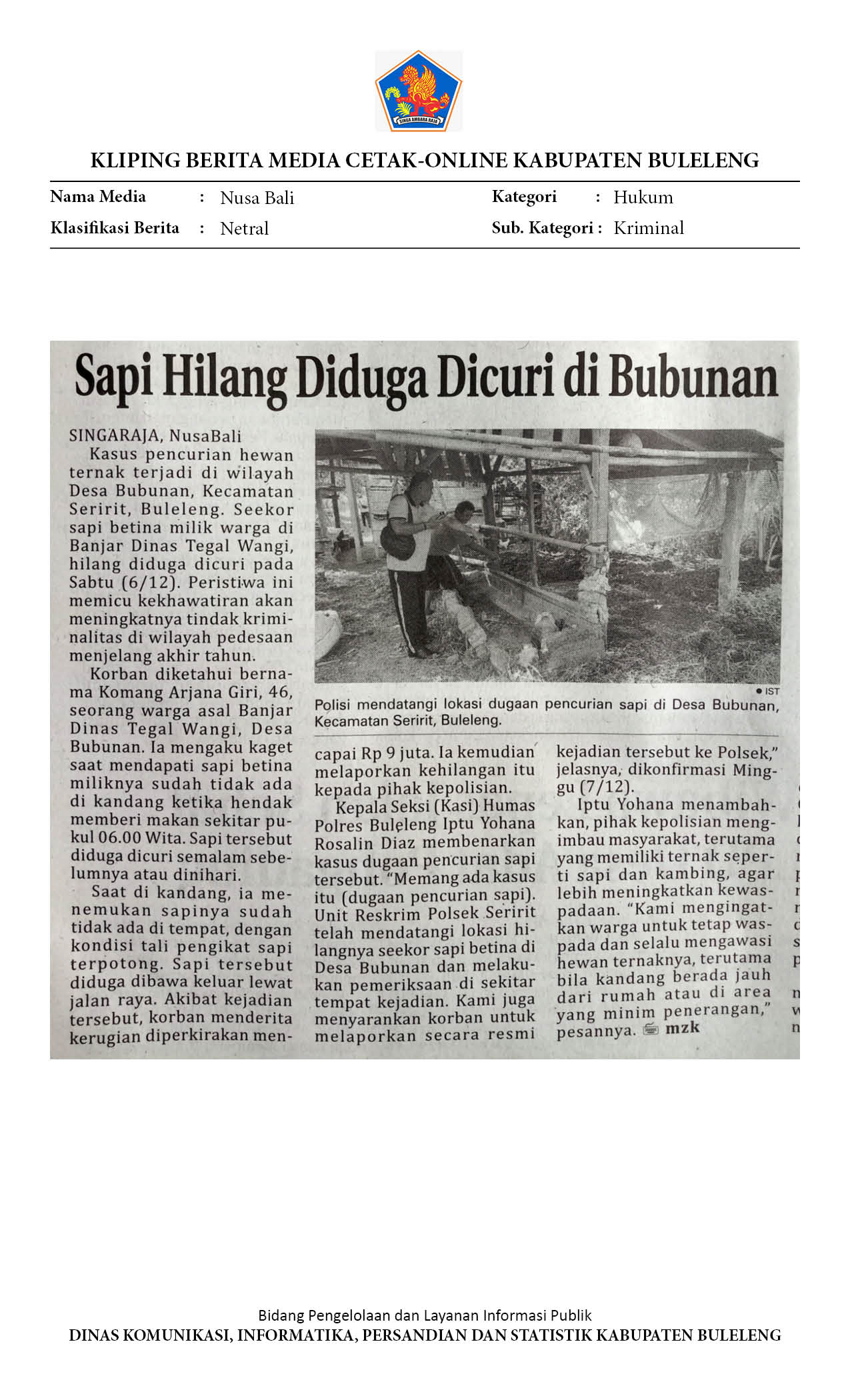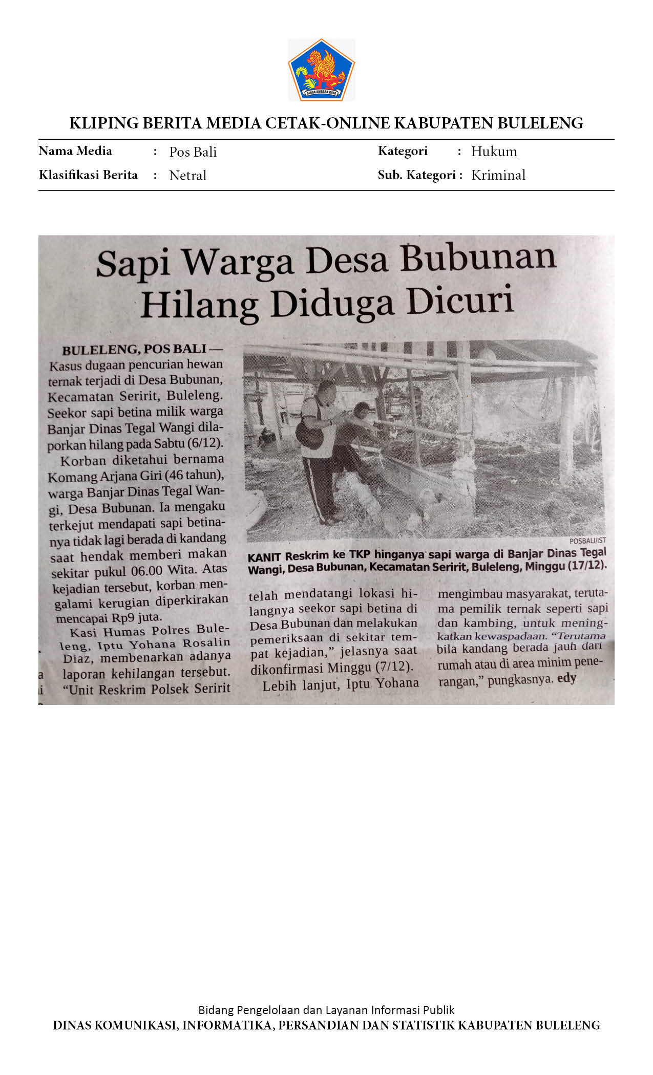 SAPI WARGA DESA BUBUNAN HILANG DIDUGA DICURI