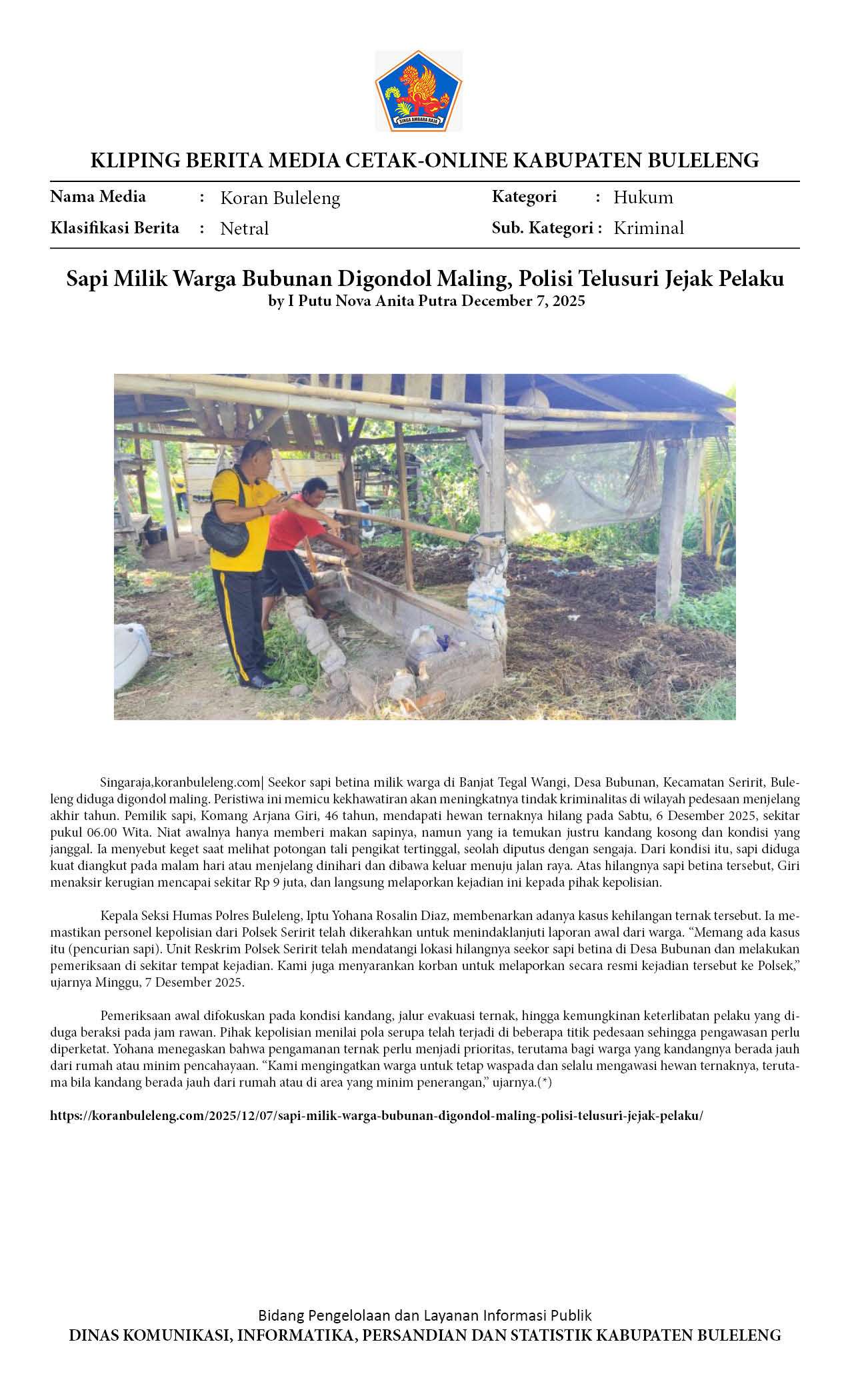 SAPI MILIK WARGA BUBUNAN DIGONDOL MALING, POLISI TELUSURI JEJAK PELAKU