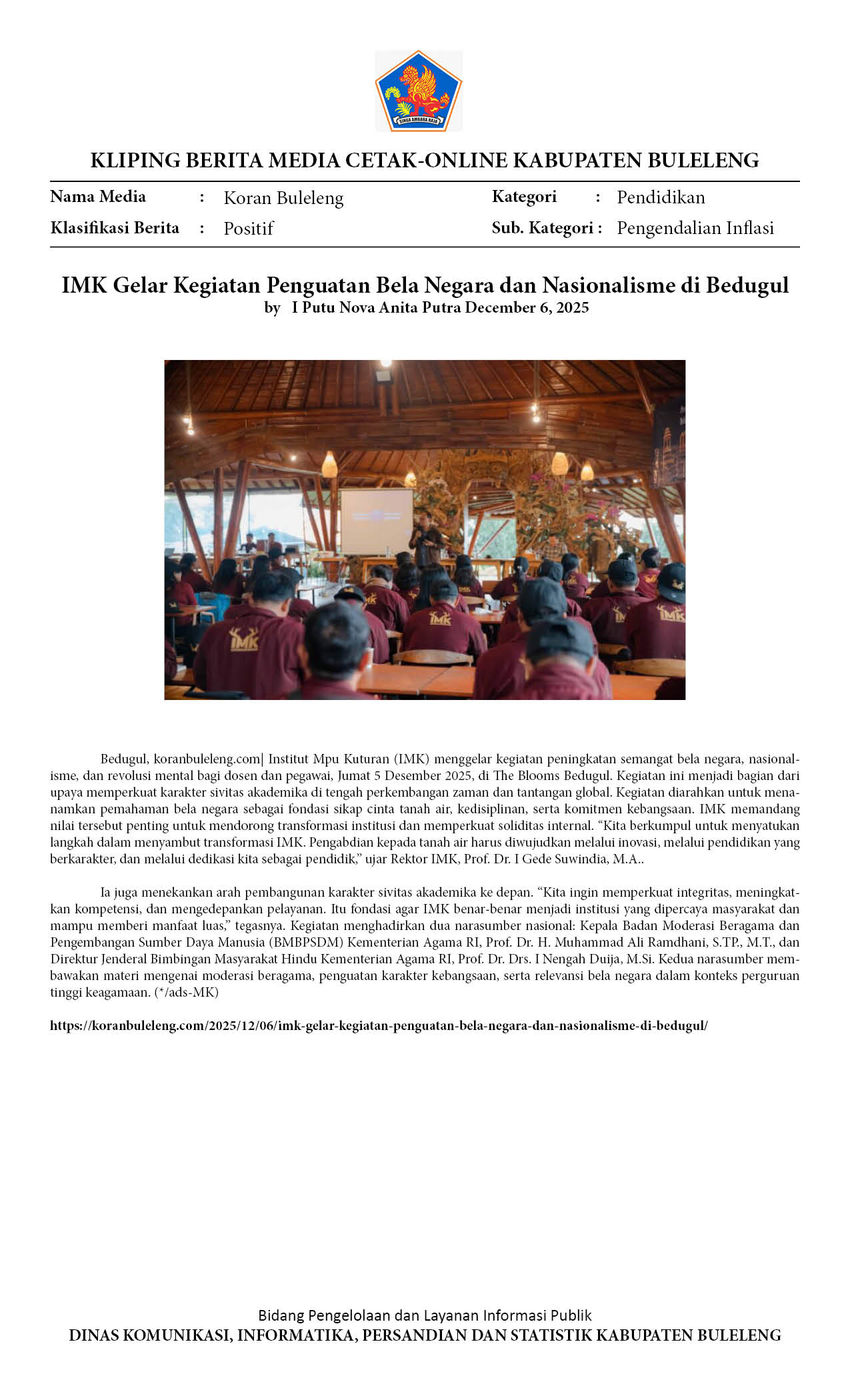 IMK GELAR KEGIATAN PENGUATAN BELA NEGARA DAN NASIONALISME DI BEDUGUL