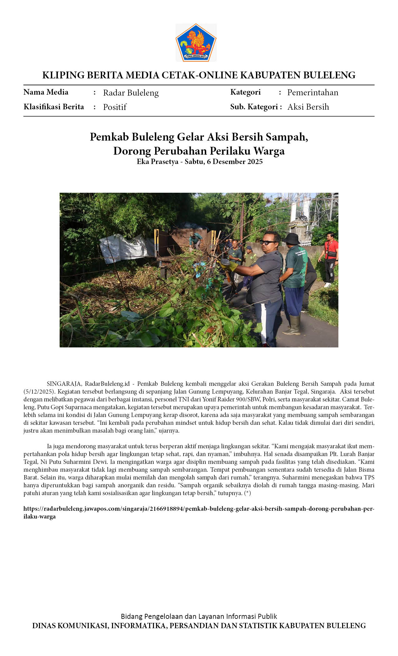 PEMKAB BULELENG GELAR AKSI BERSIH SAMPAH, DORONG PERUBAHAN PERILAKU WARGA