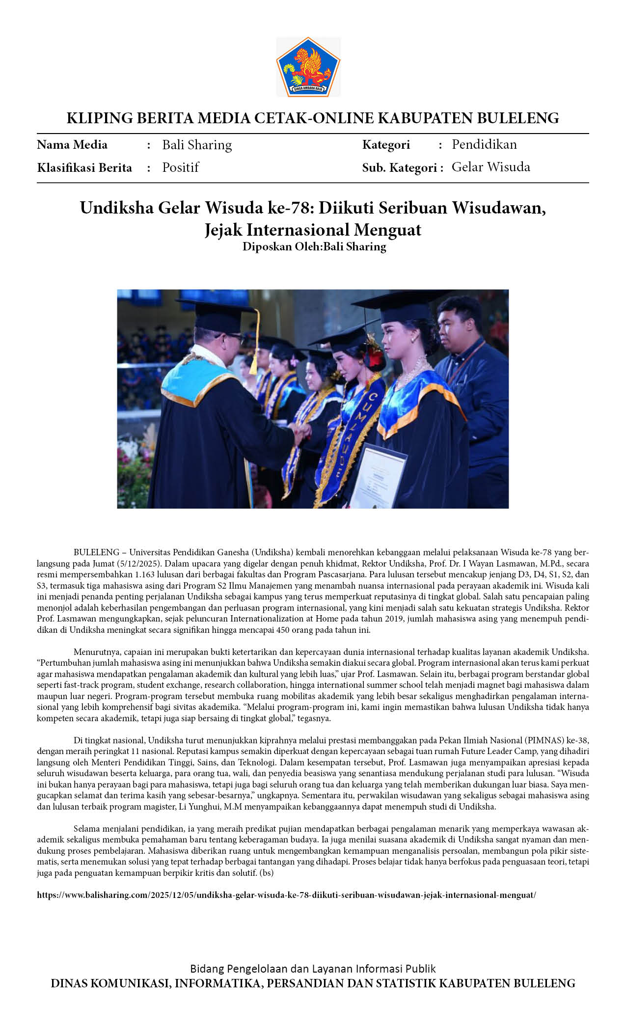 UNDIKSHA GELAR WISUDA KE-78: DIIKUTI SERIBUAN WISUDAWAN, JEJAK INTERNASIONAL MENGUAT