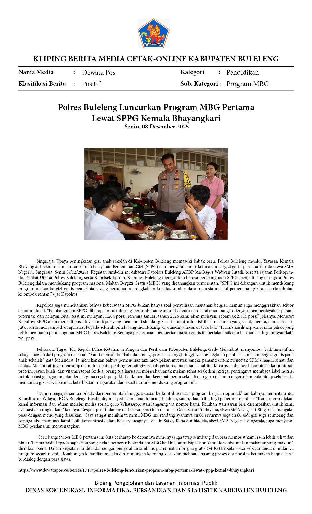 POLRES BULELENG LUNCURKAN PROGRAM MBG PERTAMA LEWAT SPPG KEMALA BHAYANGKARI
