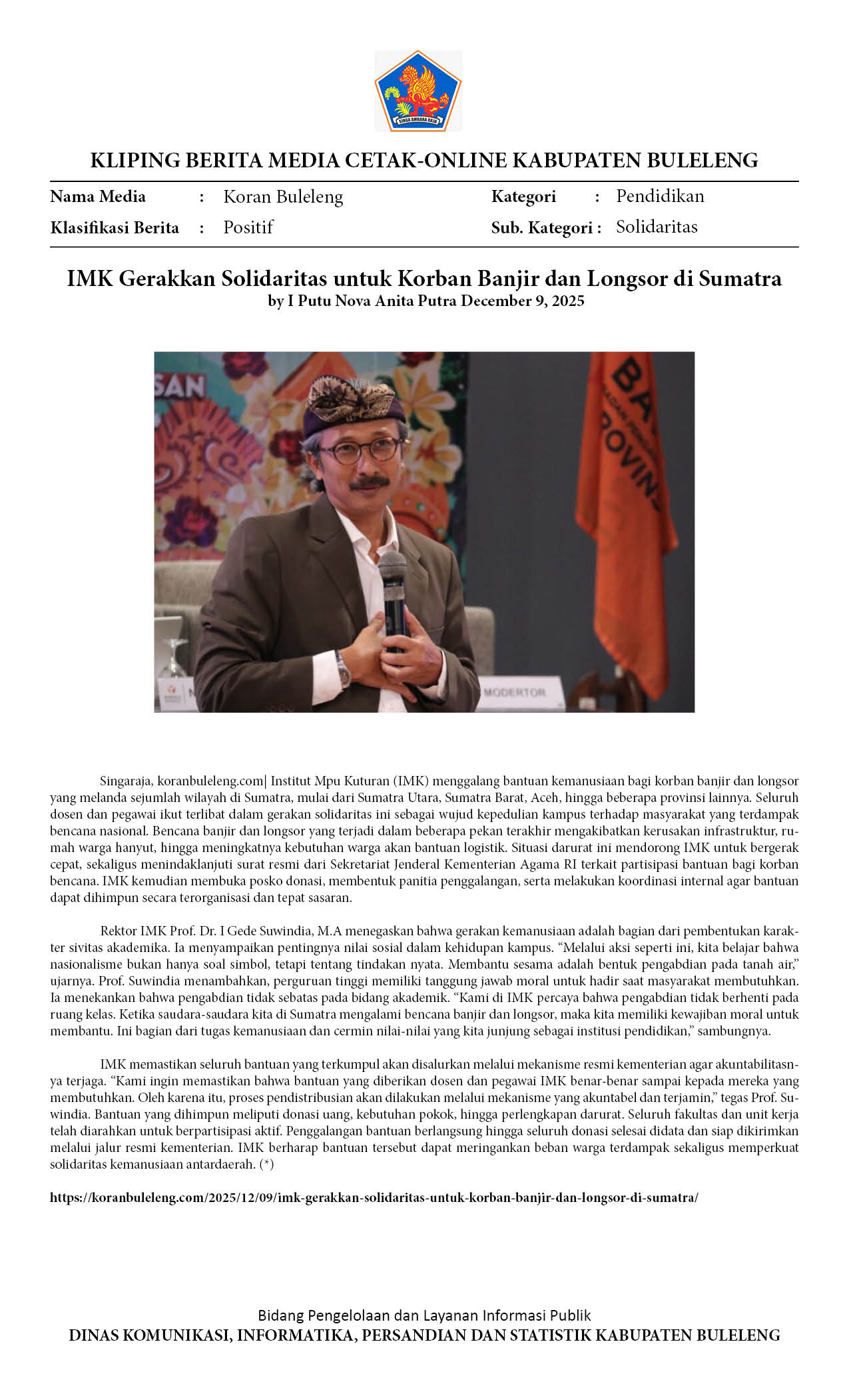 IMK GERAKKAN SOLIDARITAS UNTUK KORBAN BANJIR DAN LONGSOR DI SUMATRA
