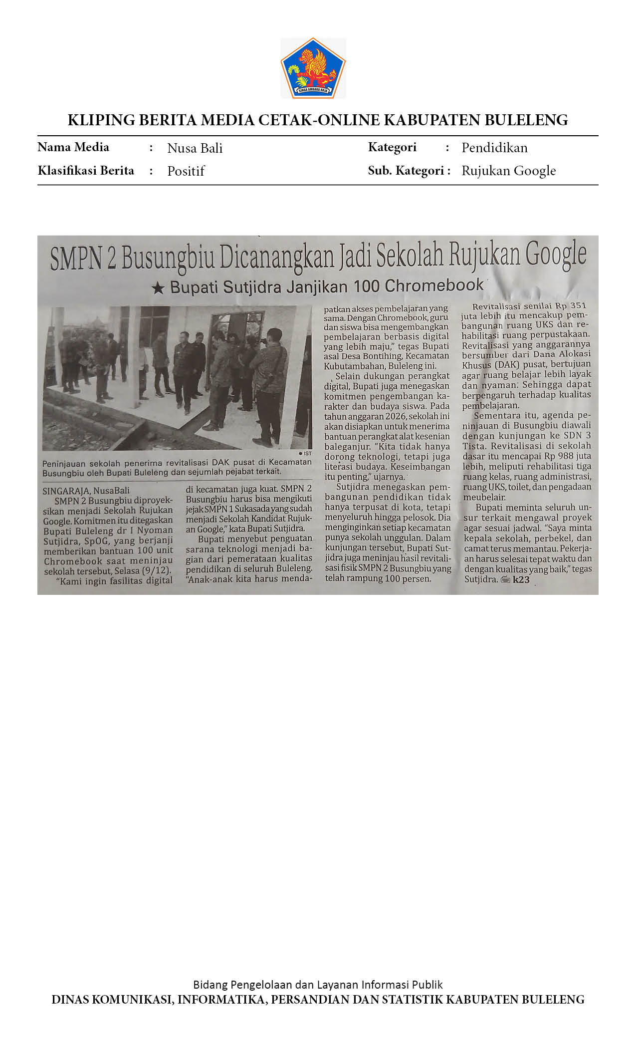 SMPN 2 BUSUNGBIU DICANANGKAN JADI SEKOLAH RUJUKAN GOOGLE
