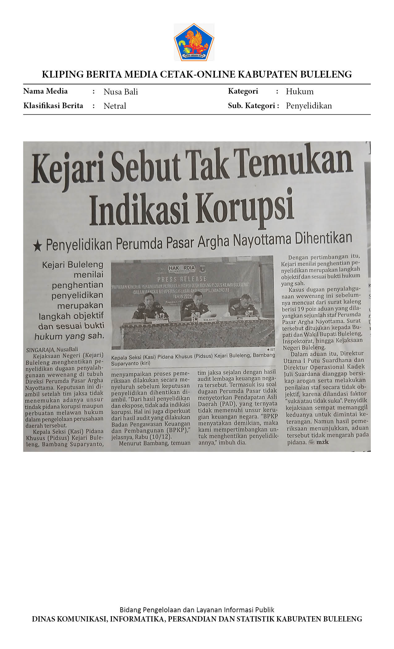 KEJARI SEBUT TAK TEMUKAN INDIKASI KORUPSI